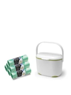Addis Premium Food Waste Compost Caddy With 120 Compost Liners, White & Green