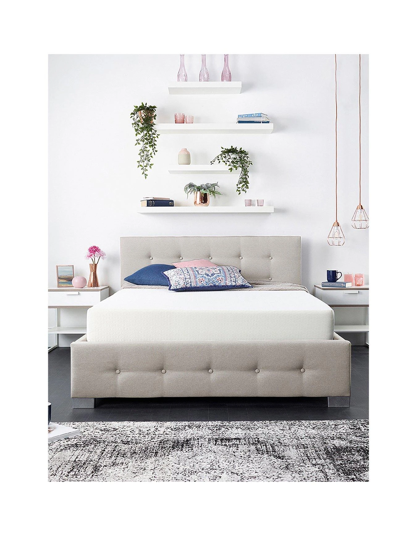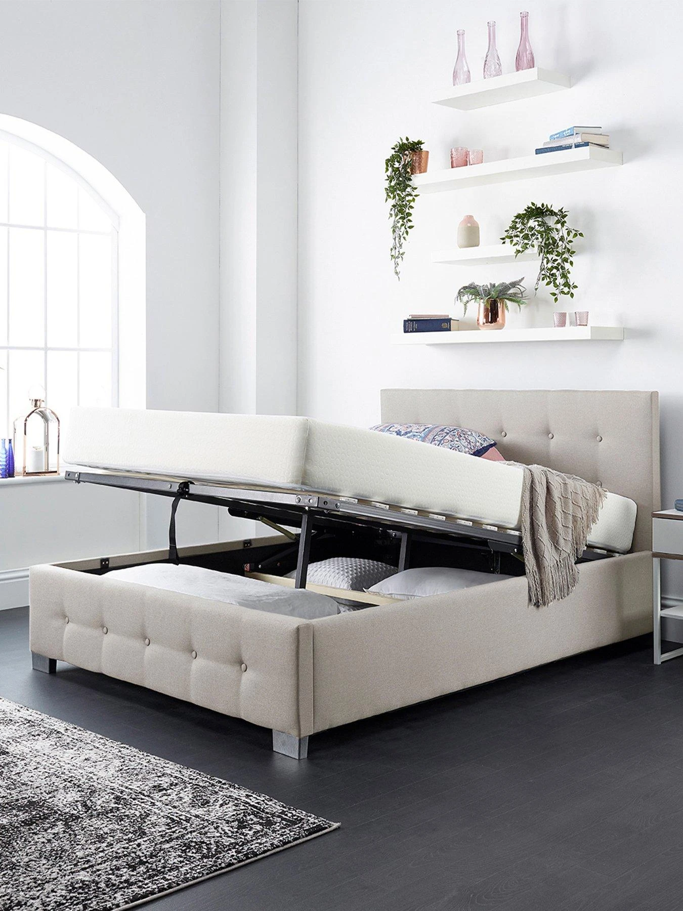 This storage ottoman bed by Aspire has a classic buttoned finish to the headboard and footboard. The padded headboard provides added comfort when sitting up in bed, and the whole thing is wrapped in a quality linen fabric.