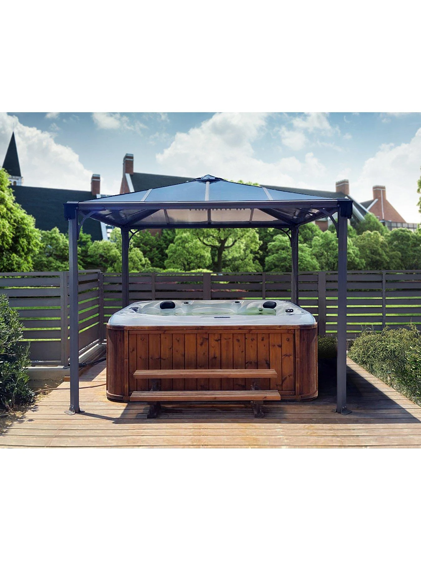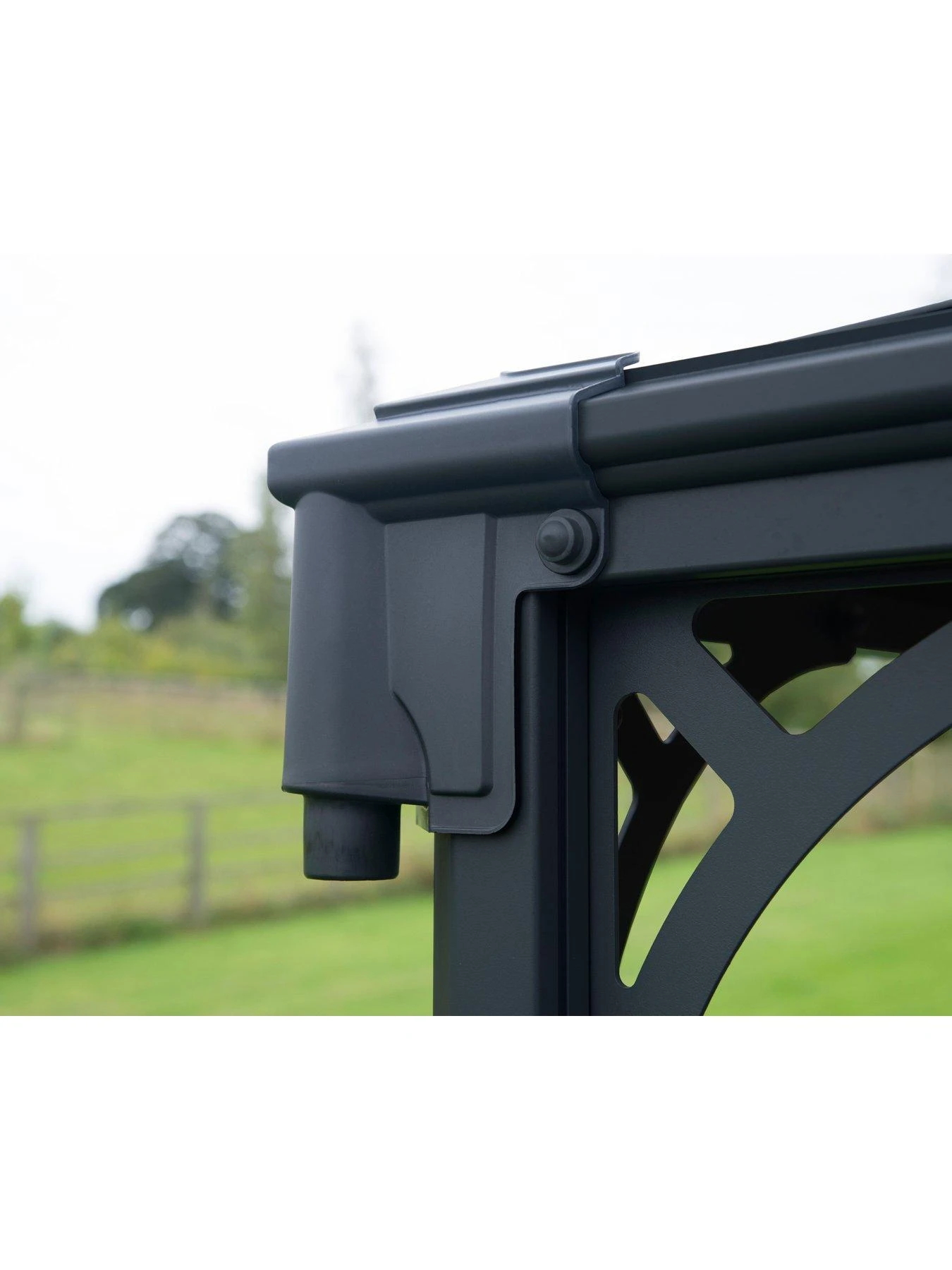 Canopia by Palram designed this stylish, sturdy and weatherproof outdoor structure to last. It boasts virtually unbreakable, UV protected polycarbonate twin-wall panels, alongside a robust, granulated anthracite coated frame made from heavy-duty aluminium and laser cut galvanized steel connectors – meaning that you will enjoy relaxing under the Palermo for years to come.