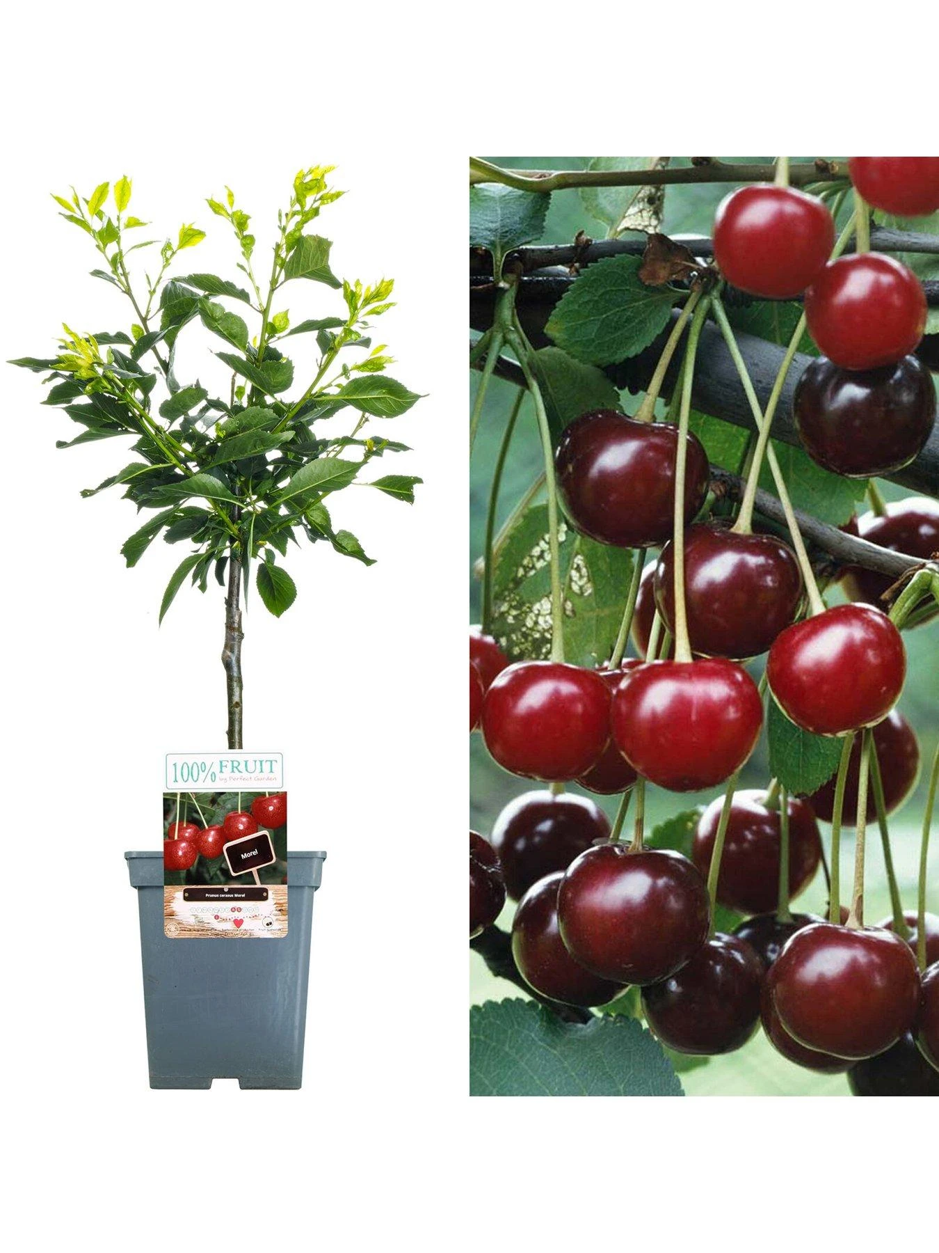 Prunus avium Cherry Tree – The cherries hold a refreshing, rich, sweet flavour and good texture perfect for eating fresh off the tree though they do tend to crack and split in wet climates. The spreading branches carry dark green leaves and clusters of small, sweetly scented white flowers during the Spring followed by large, glossy dark red cherries during mid-Summer. Plant your Stella, Morello or Regina variety in moist, fertile, well-drained soil and keep in full or partial sun. can be fan trained or grown free standing. Birds tend to eat the fruit, so some netting is advised.
