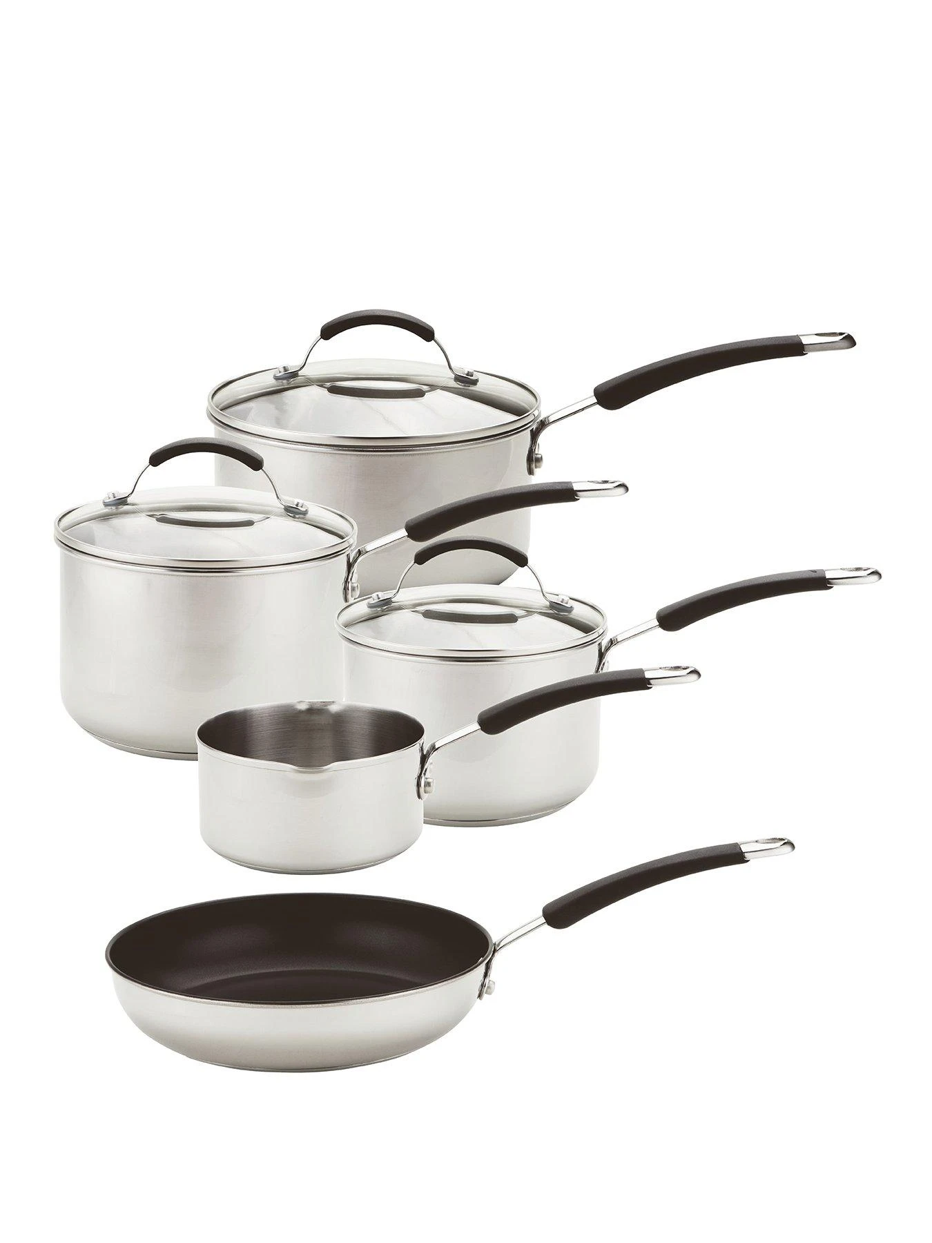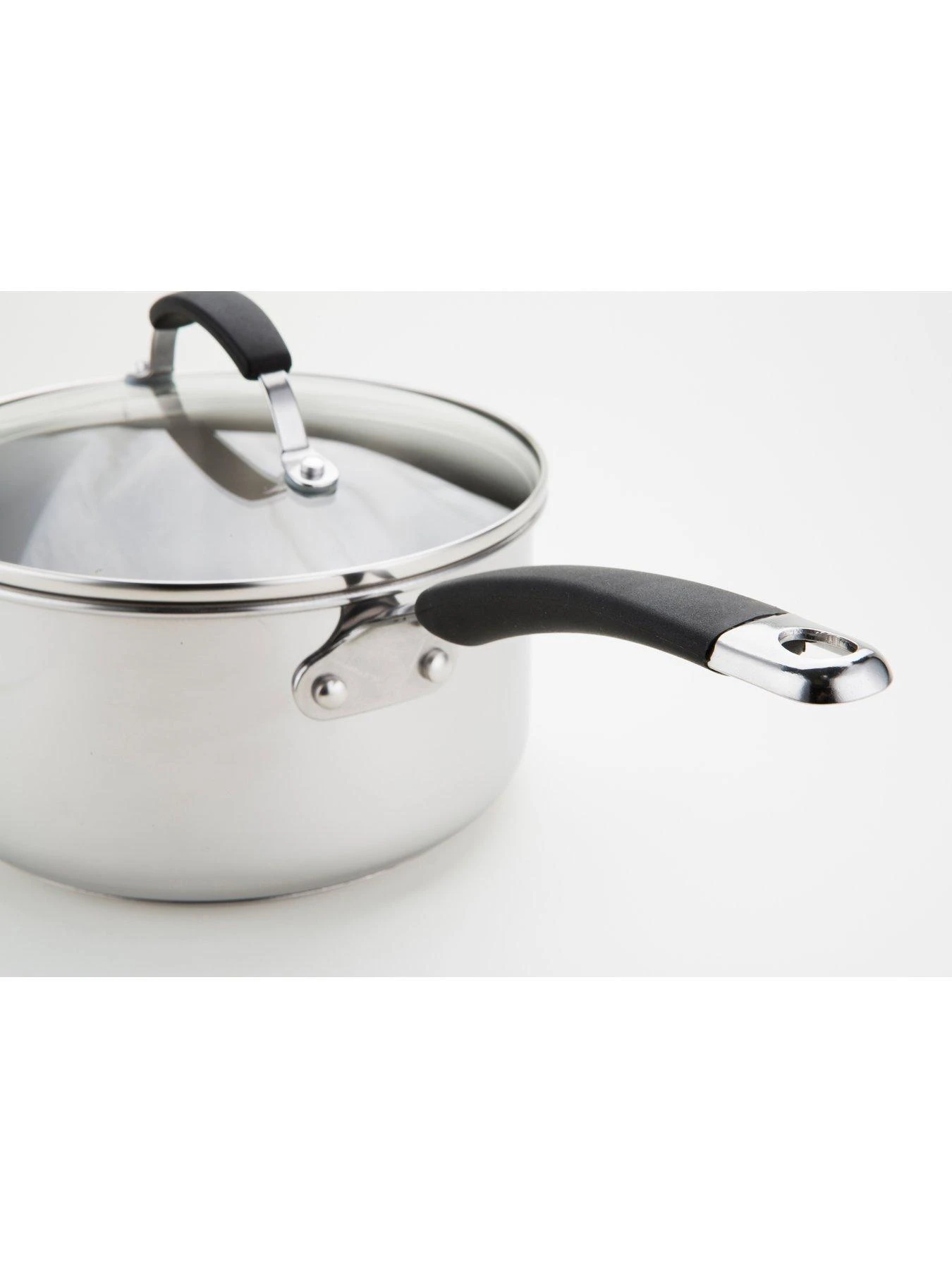 - Saucepans include toughened glass lids providing see-through cooking convenience.