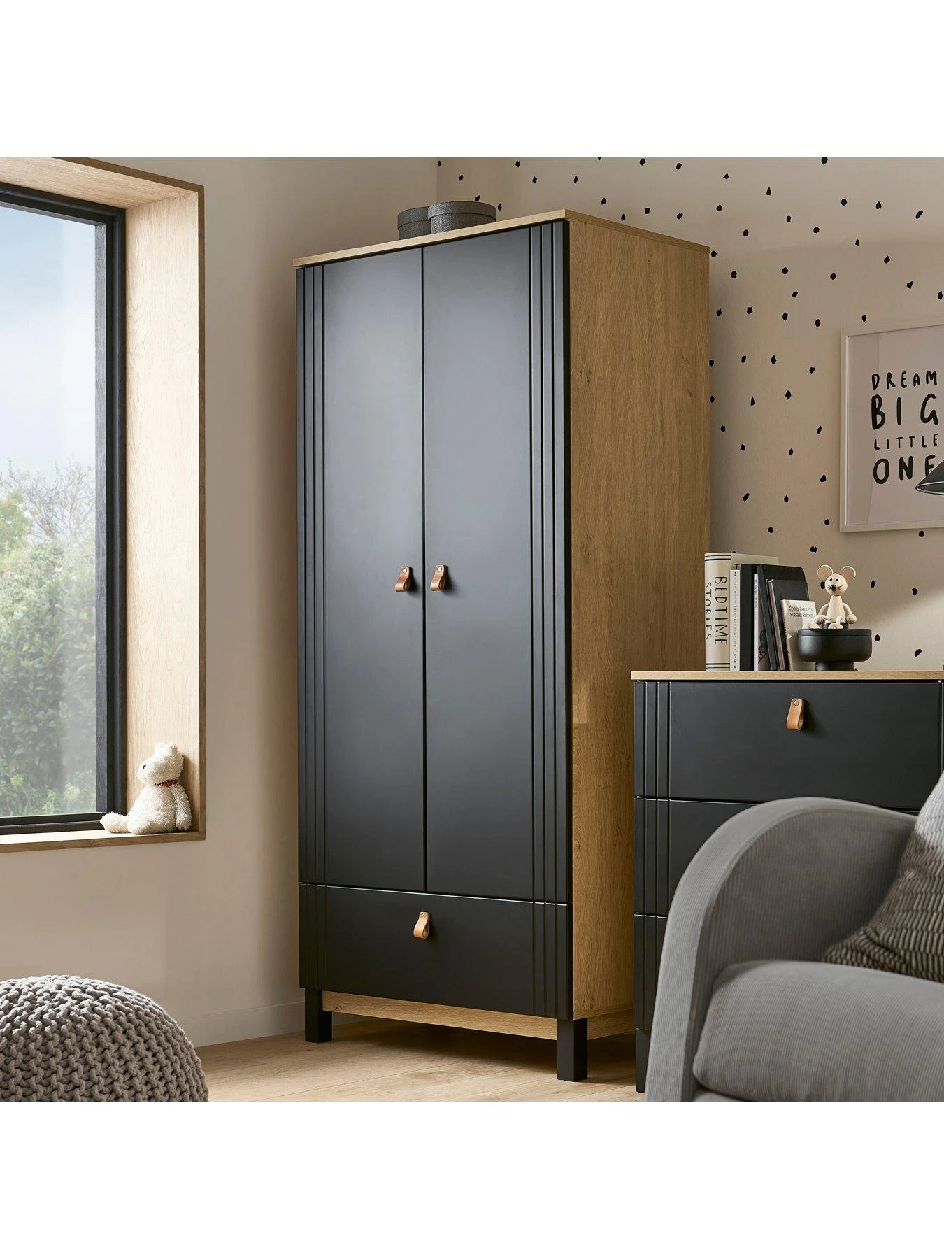 The Rafi 3-Piece Nursery Furniture Set is a timeless range that will easily grow with your family, from nursery to bedroom. Rafi combines natural oak tones with a smooth black, painted finish, and subtle linear detailing. Boasting a bold, minimalist style, this nursery set is perfect for the modern nursery.