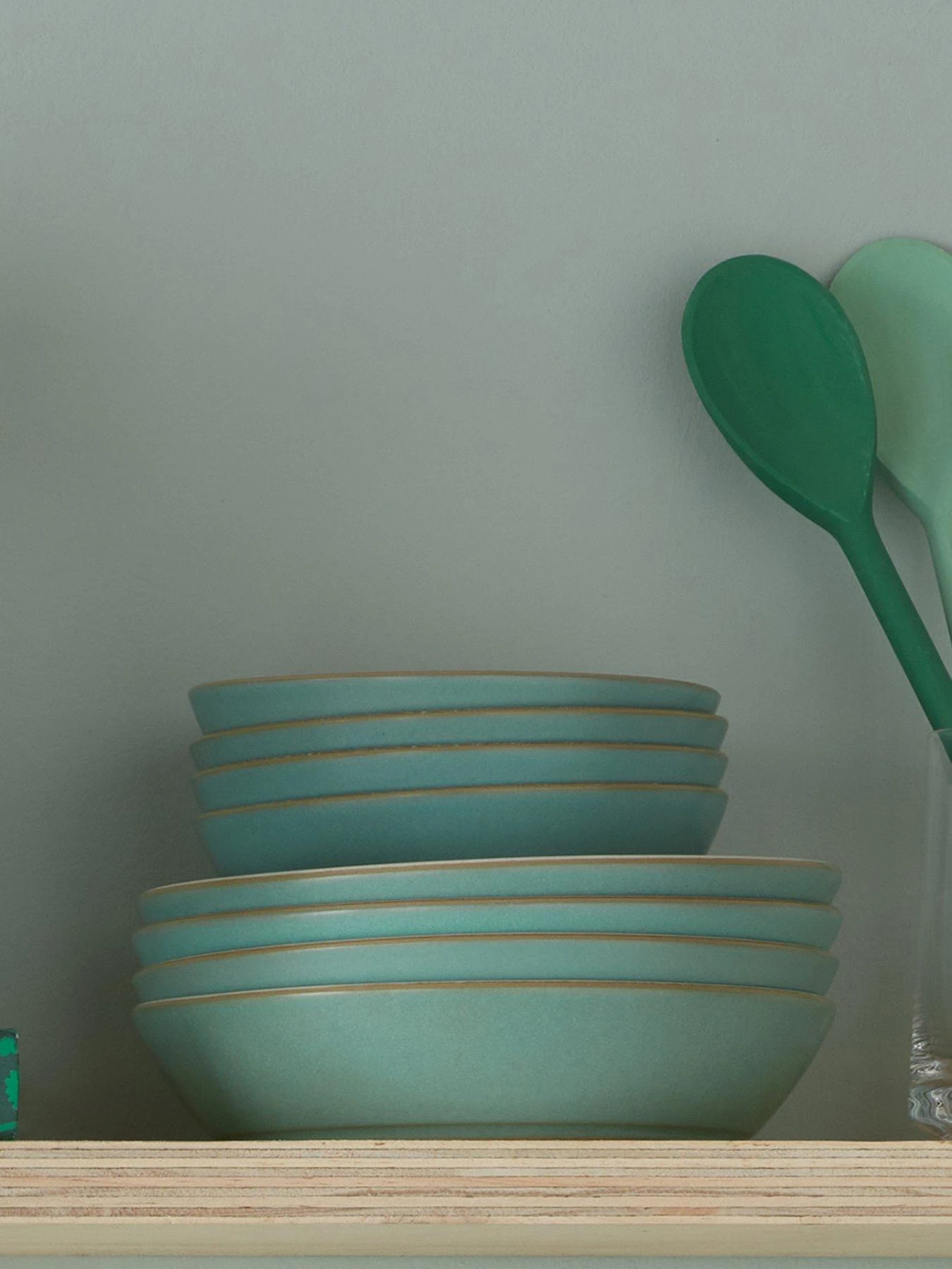 In a multi-tonal mint green colourway, each piece is finished with a contrasting rim for a timeless visual that works in classic and contemporary dining rooms alike. A spiral swirls toward the centre of each dish, drawing the attention to your culinary creations, while the raised sides make them ideal for everything from classic carbonara to risotto and lasagne.