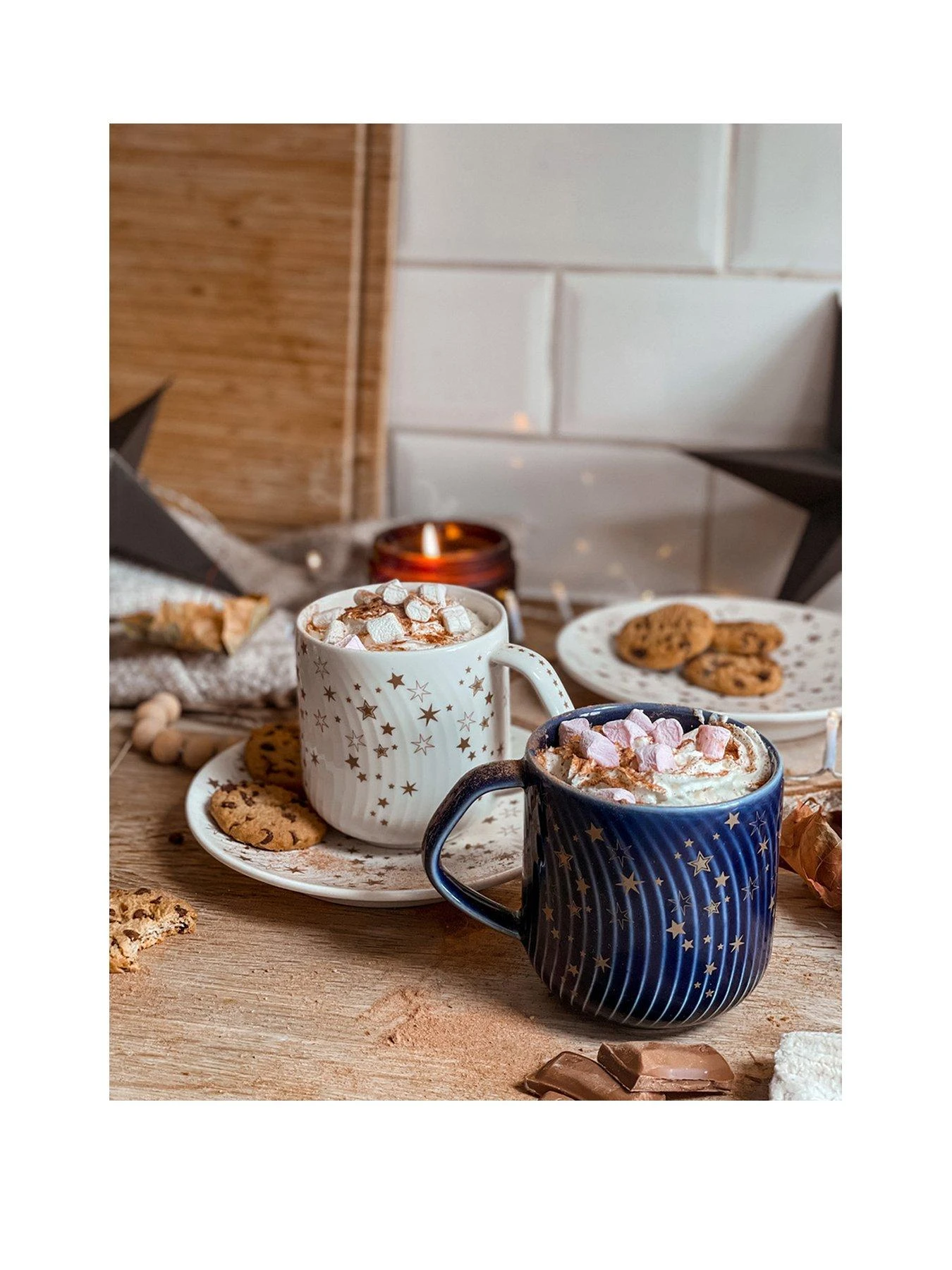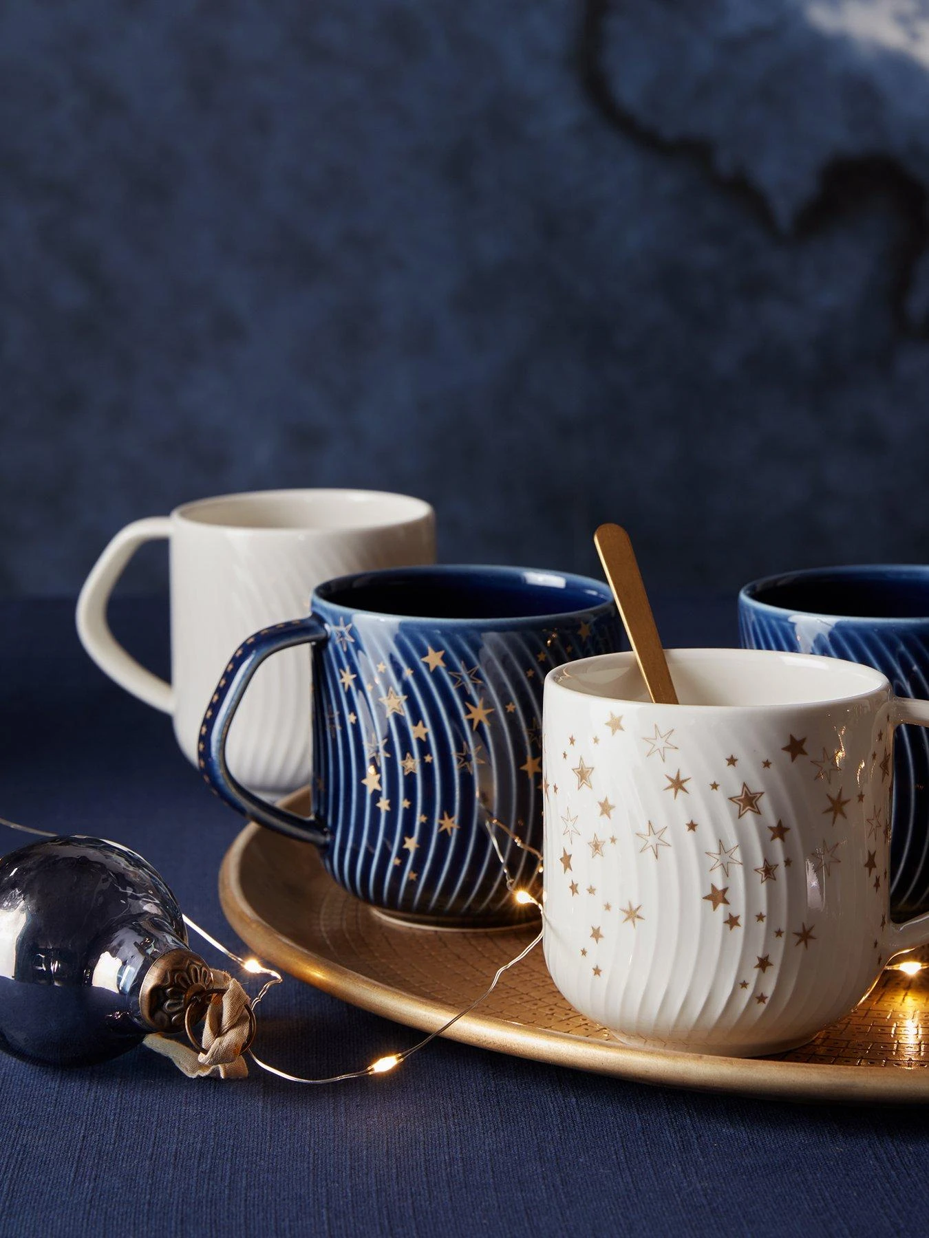 Each one flaunts arcing ribs that run all around the exterior, so they look amazing whether you’re enjoying a coffee first thing in the morning or an indulgent hot chocolate. Their gold star motifs streak all over for a gorgeous finishing touch.