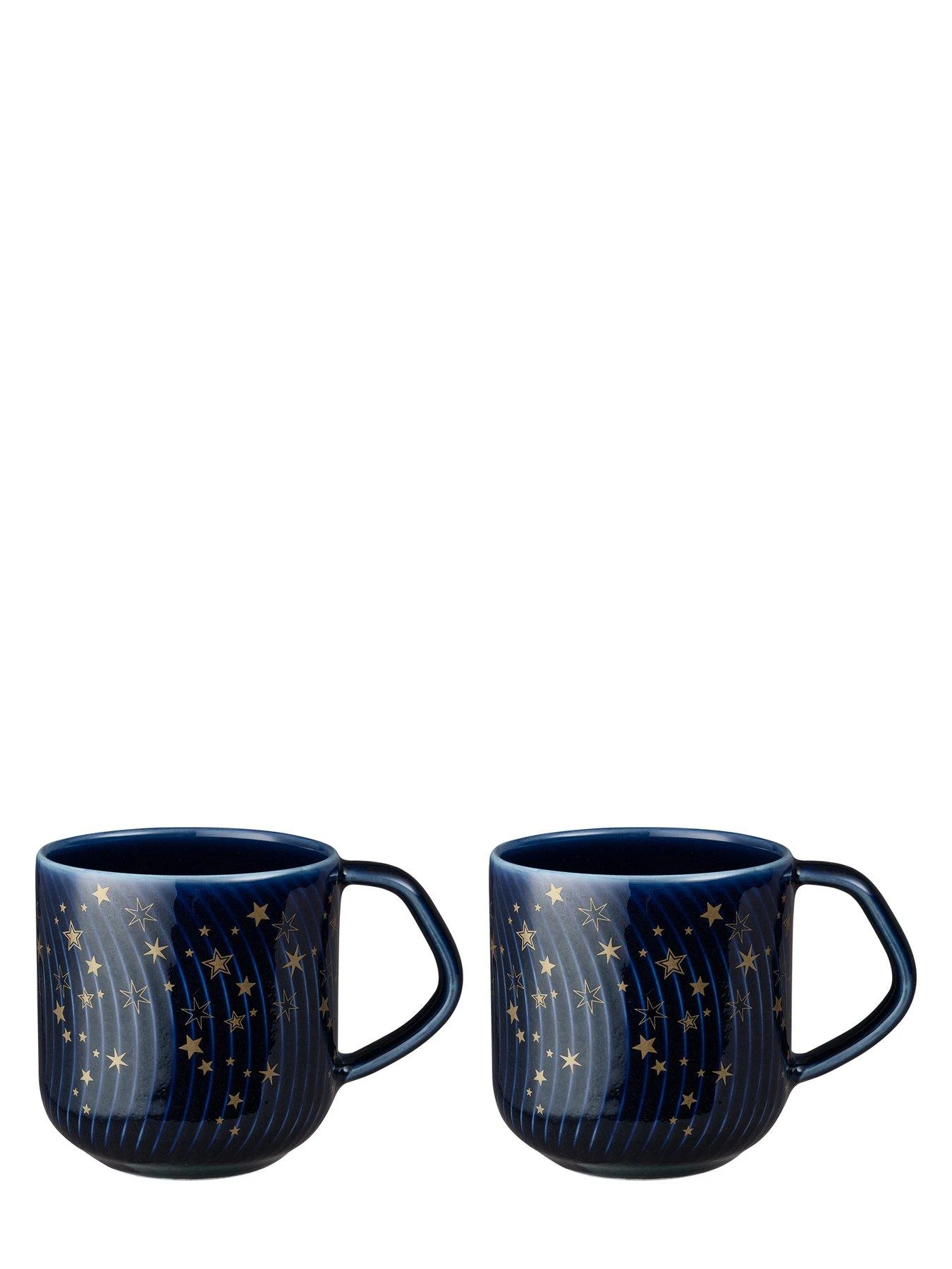 Denby Porcelain Stars Mugs in Blue – Set of 2