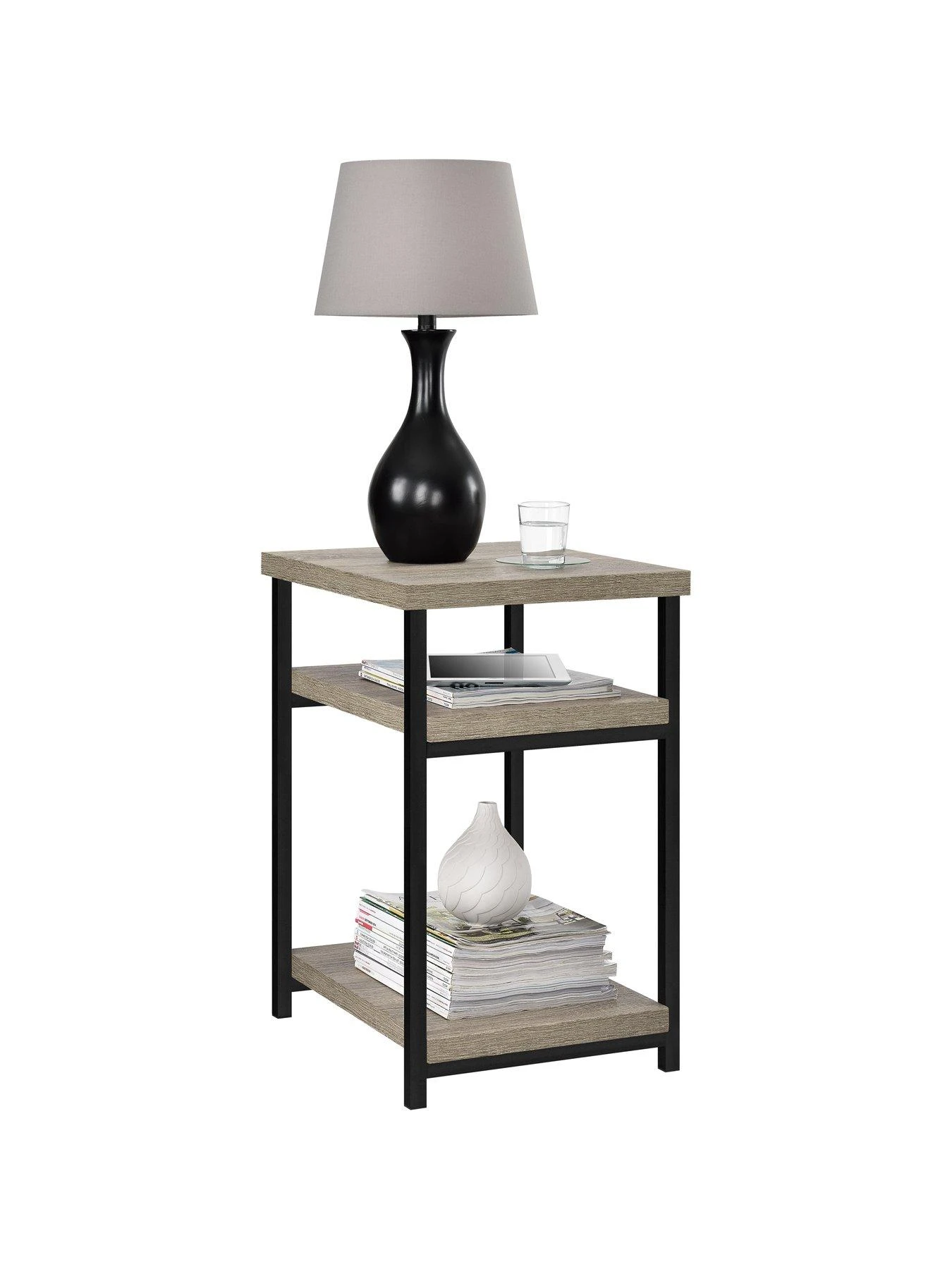 This end table from the Elmwood has an open design to ensure an airy appearance in your living space.Â