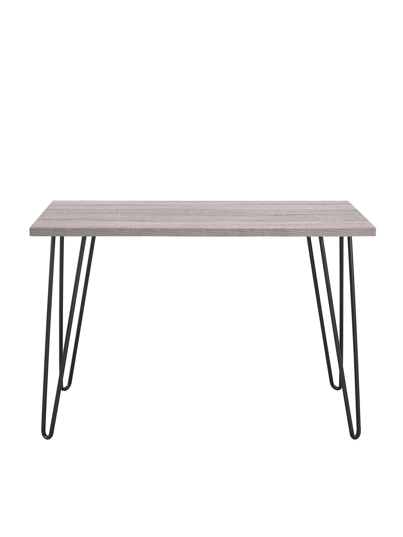 A modern desk that’s ideal for stylish study and work spaces, Owen gets its contemporary kicks from the black powder coated metal hairpin legs that inject the furniture with a mid-century style. The top contrasts in an oak-effect finish with a realistic mix of grain patterns and colour variations – a perfect platform for your laptop, files, folders and more.