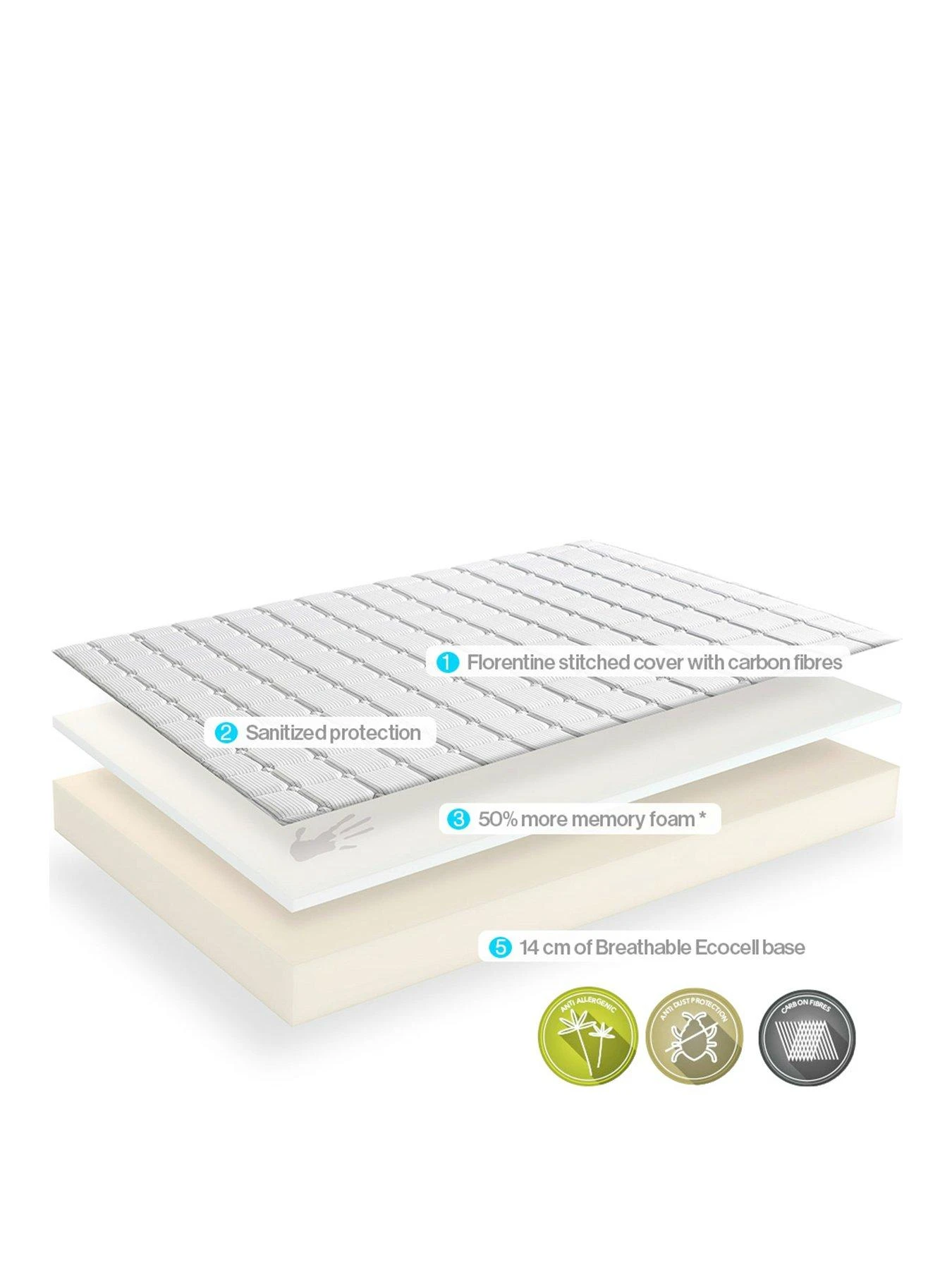 The Memory Plus mattress is strong enough to provide support for the heavier areas of the body while remaining perfectly elastic. It’s that extra layer of Ecocell which provides extra support and comfort. Ecocell is a patented 3D open cell structure that’s designed to work in unison with Dormeo Memory Foam.