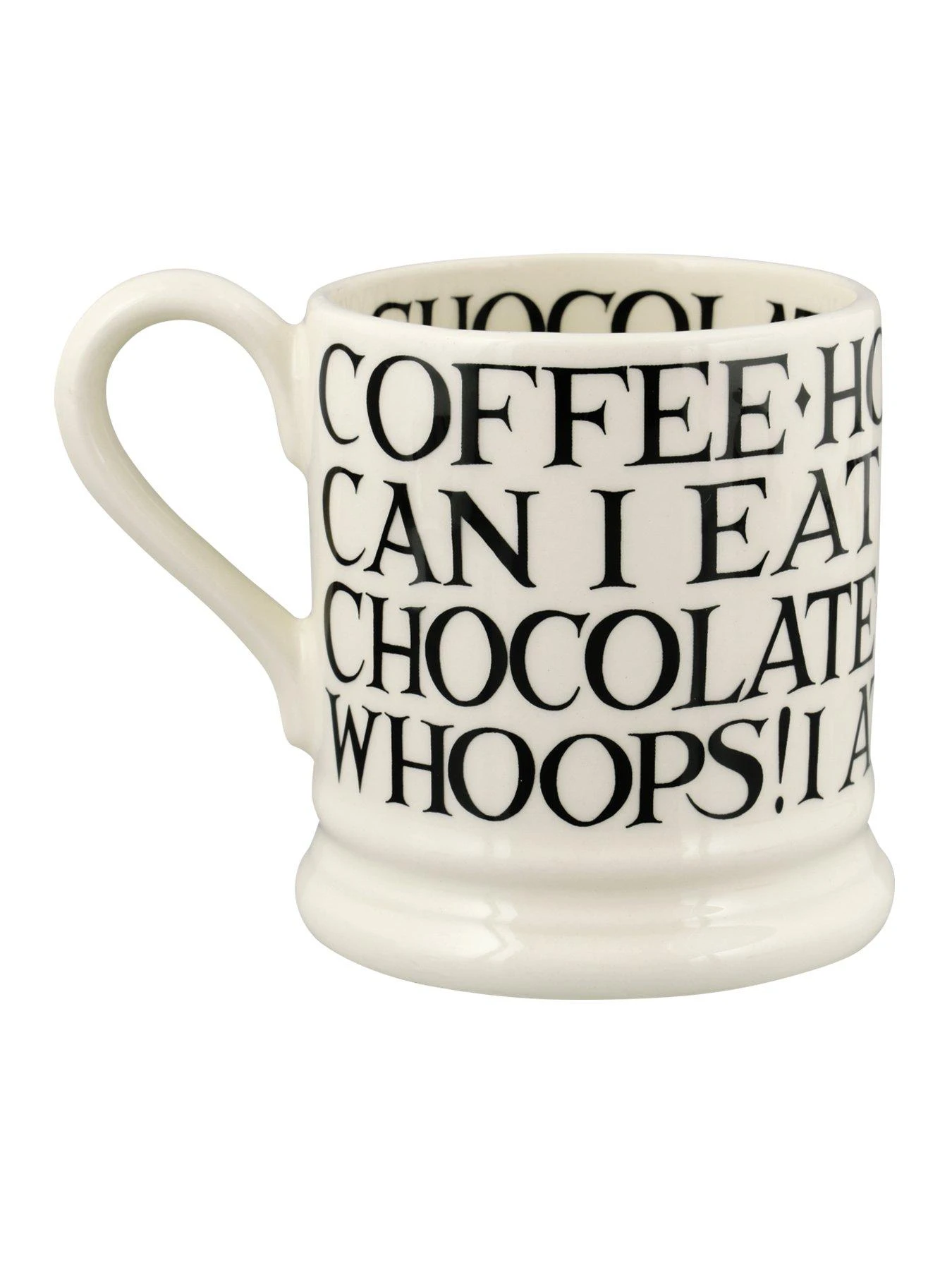 Beautifully made from English earthenware, this mug’s tankard-inspired shape is brought to life by a typographical print on both the interior and exterior walls. With everything from coffee and tea to the admission of Whoops! I ate the packet, it’s perfect for anyone who loves to relax with a brew. A slim handle adds to the charm, and it’s finished with a coordinating branded stamp to the base.