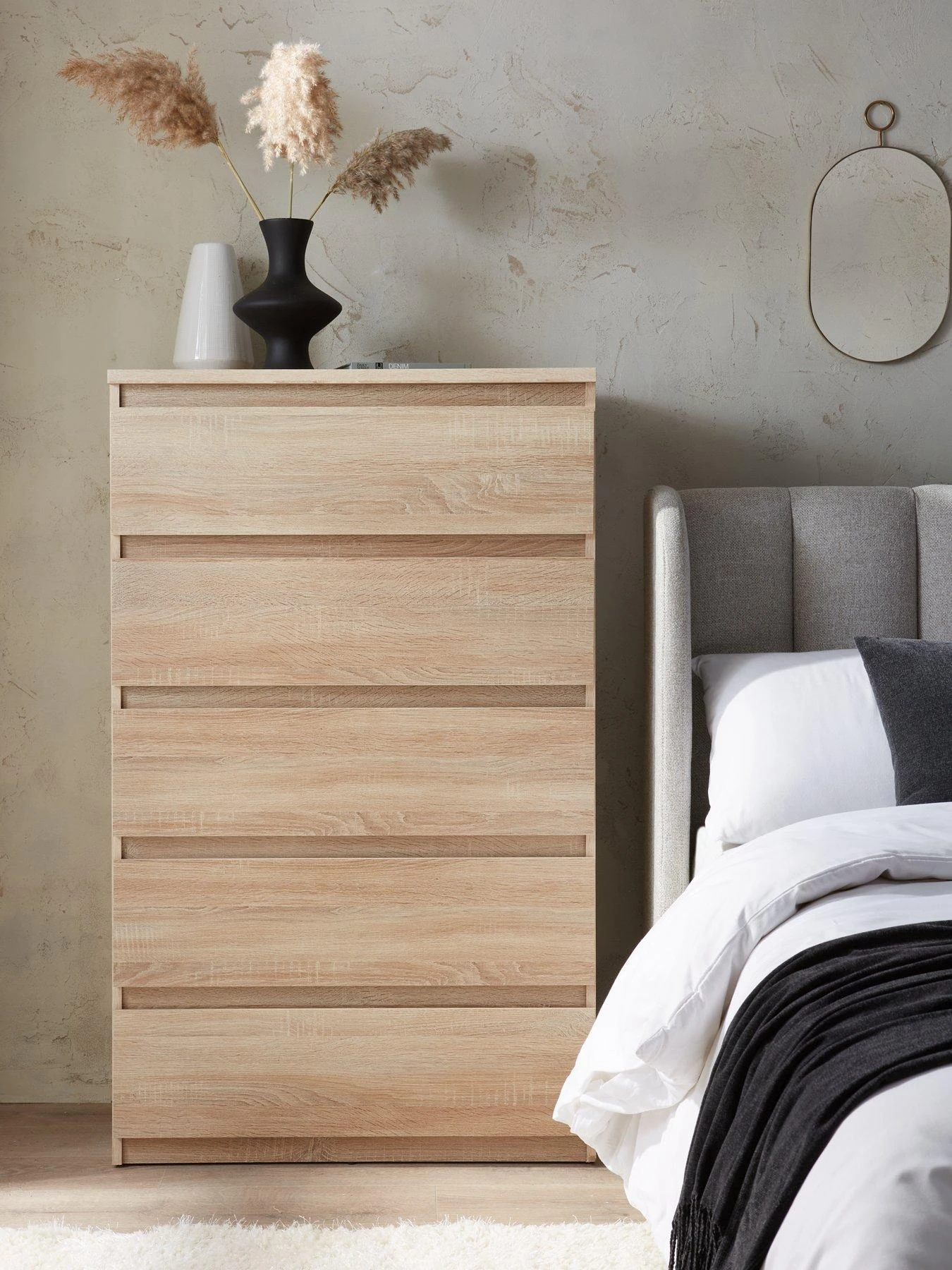 Ensuring there’s nothing to distract the attention away from its clean silhouette, the drawers have a handle-free design. These 5 drawers offer lots of room for tees, socks, underwear and more, while easy-glide metal runners mean they open smoothly.