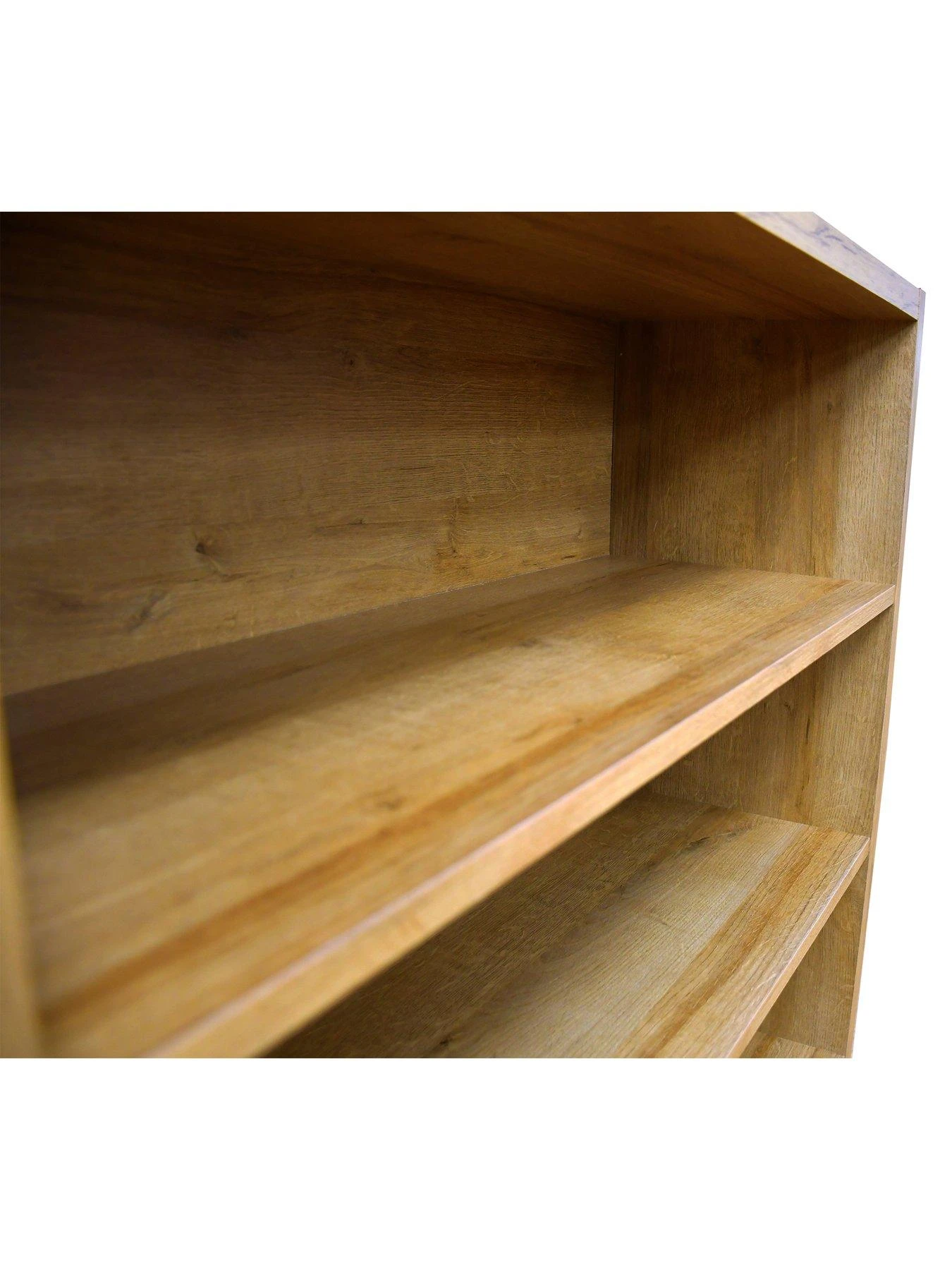 Finished in a neatly grained oak-effect finish, this bookcase has a short, wide design so that it’s perfect for smaller spaces. It still provides plenty of room to show off your favourite novels or autobiographies, pictures or plants and so much more.