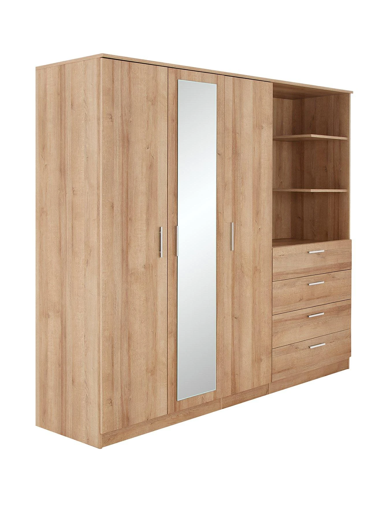 Everyday Panama 3 Door, 4 Drawer Combi Wardrobe in Oak Effect, Grey or White – FSC® Certified