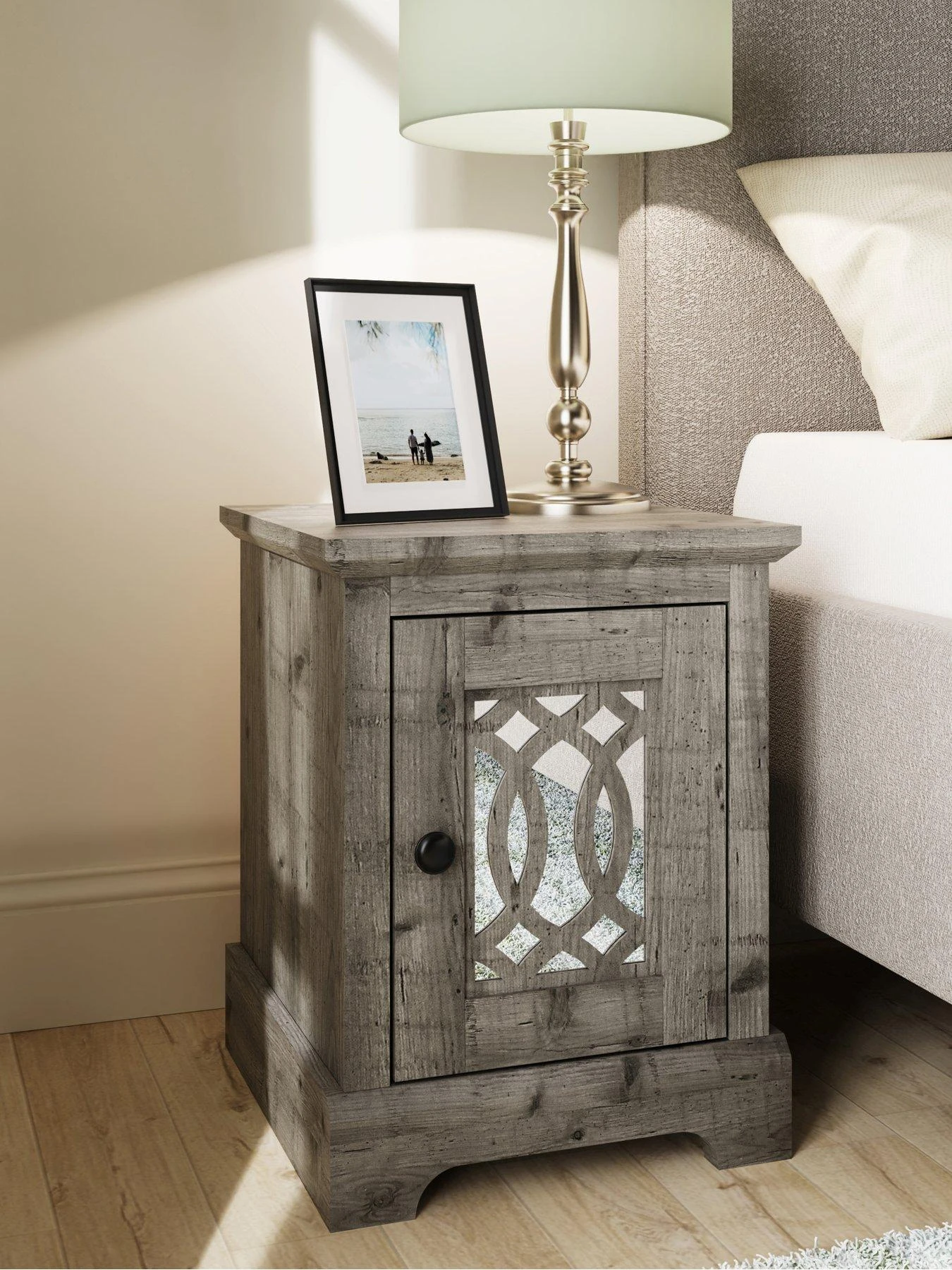 GFW Amelie Mirrored Bedside Chest in Grey or Light Grey Wood Effects