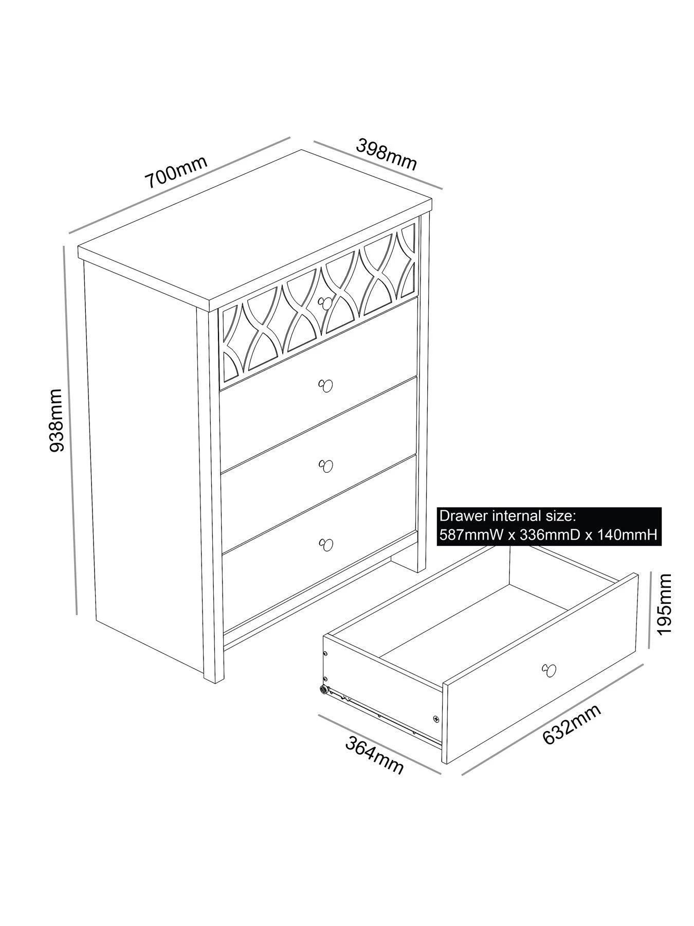 All the drawers are finished with metal knob handles and easy-glide metal runners that keep things smooth even when full of fashion.