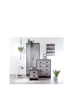 This 3 Piece Bedroom Furniture Set from GFW’s Boston Collection comprises a 2 Door Wardrobe, Chest of 4 Drawers plus a 2 Drawer Bedside Chest – Grey