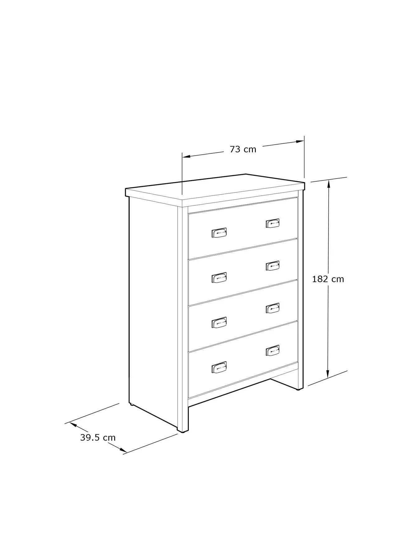 Finished with metal handles, its four wide drawers glide open on metal runners, while supports allow for increased load weight – ideal for organising all those tees, tops, joggers, socks and more.