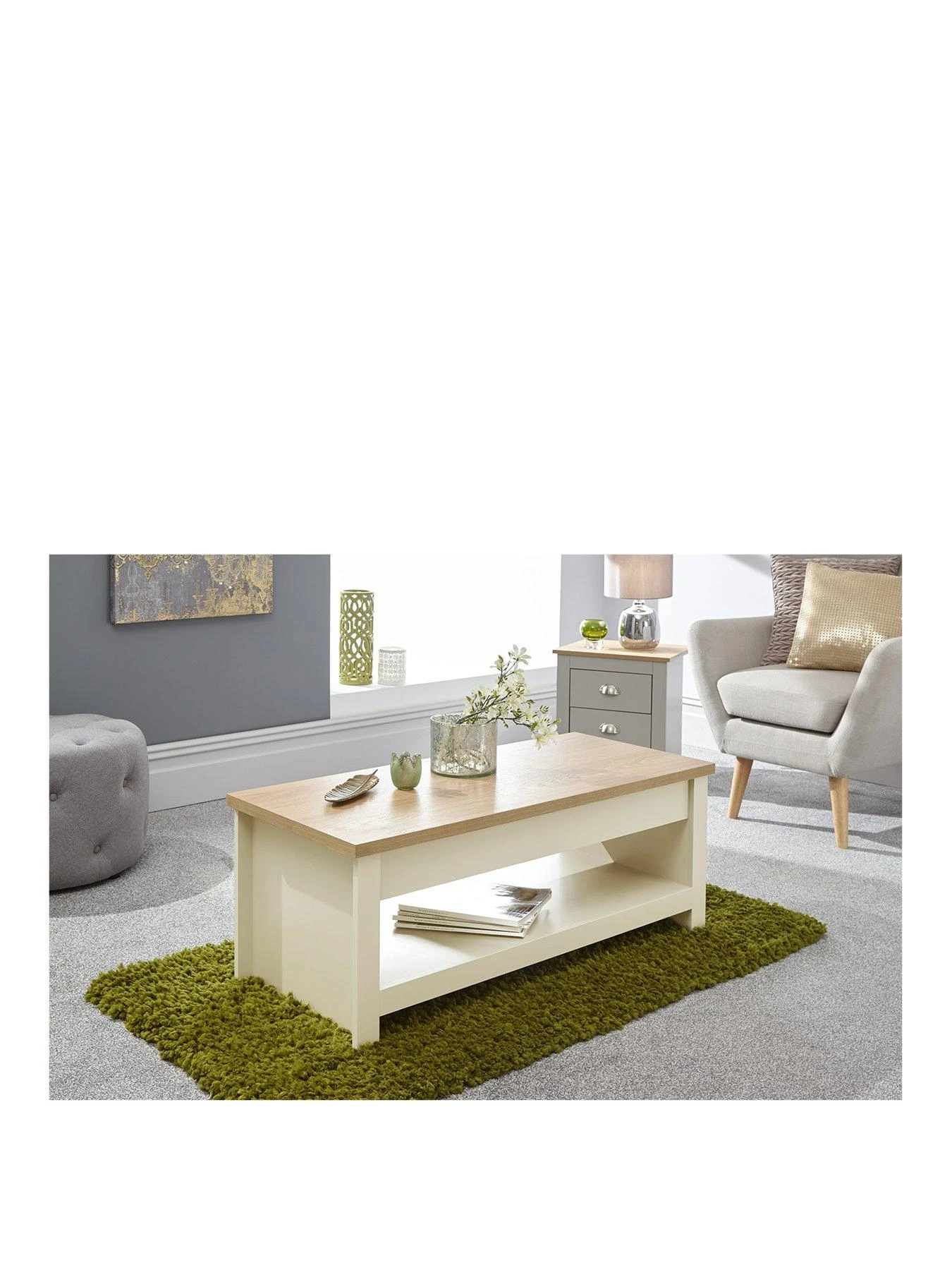 GFW Lancaster Lift Up Coffee Table in Cream/Oak Veneers