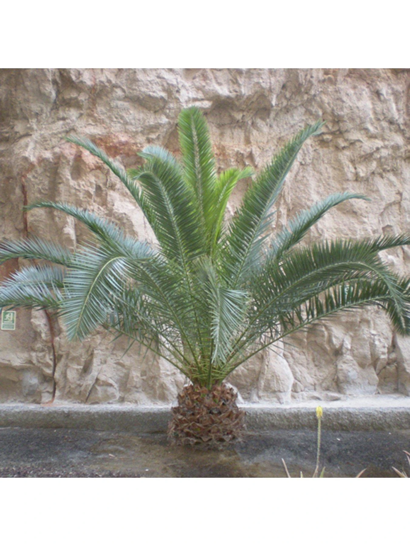 A relative of the date palm, Phoenix canariensis is a large palm tree, with spreading deep green leaves arching elegantly from its attractive, stout trunk. During a hot summer, drooping bunches of creamy-yellow flowers may appear, followed by reddish-yellow fruits. Holding a prestigious RHS Award of Garden Merit, the Phoenix canariensis makes an excellent evergreen specimen plant for the patio or conservatory. Phoenix canariensis enjoys a sheltered garden position in the UK, although will cope with temperatures down to -6C (21F).The Phoenix Palm is undeniably impressive and can grow to more than 12m in its native Canary Islands. Fortunately, here in the UK and when restricted in a container, it reaches a much more manageable height of 1.5m (5′). Add a pair of these tropical beauties to your patio or garden to create a real holiday feel for years to come – instantly conjuring up scenes of a tropical paradise, where their huge leaves waft airily in the sea breeze and you can almost hear the sea lapping at the shore.