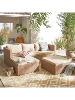 This seating set really is as comfortable to lounge on as it looks. It includes 5cm thick seat cushions, which are filled with fire-retardant sponge for enhanced safety. The neutral colour ensures that it will fit seamlessly in any space while evoking feelings of calm and tranquillity.