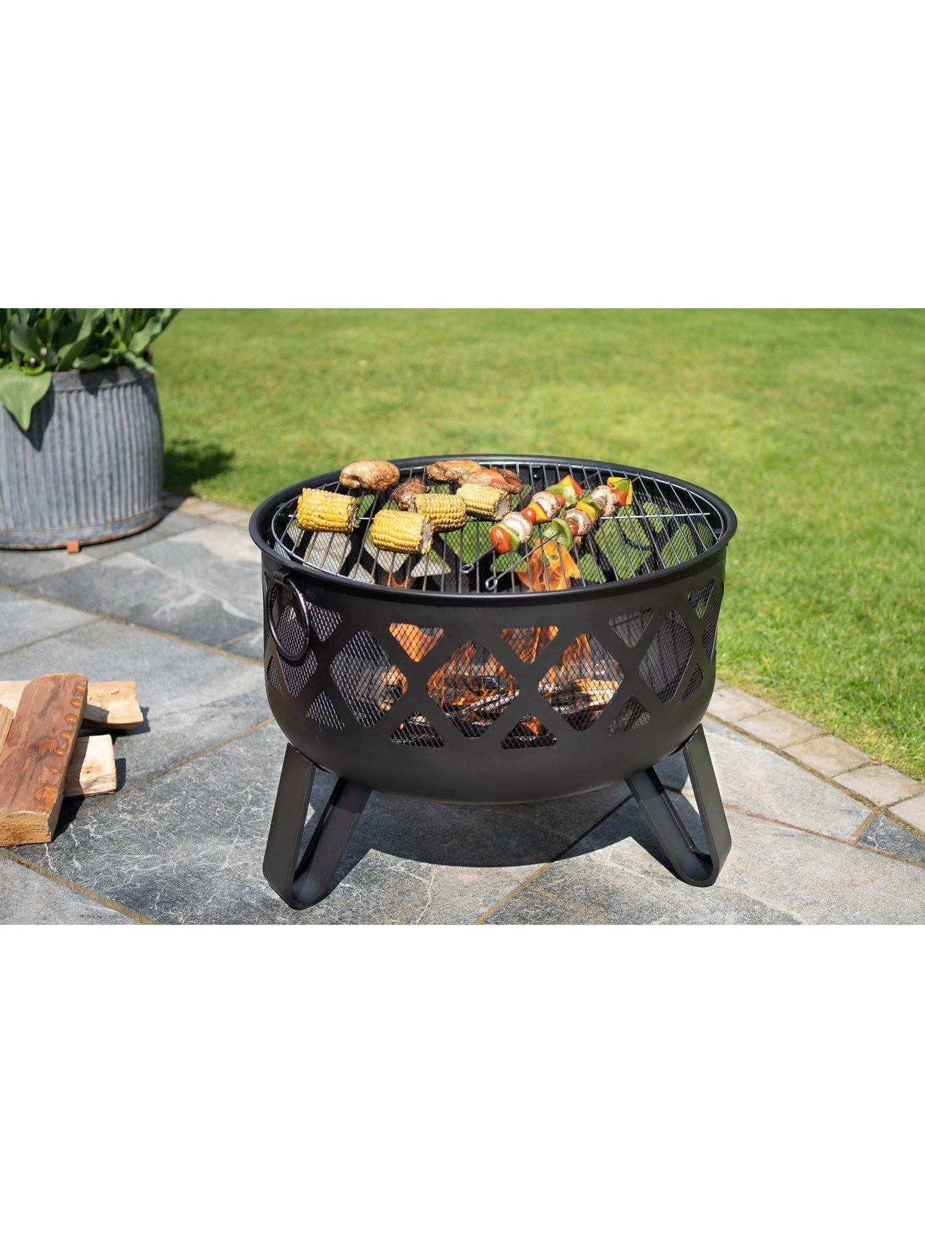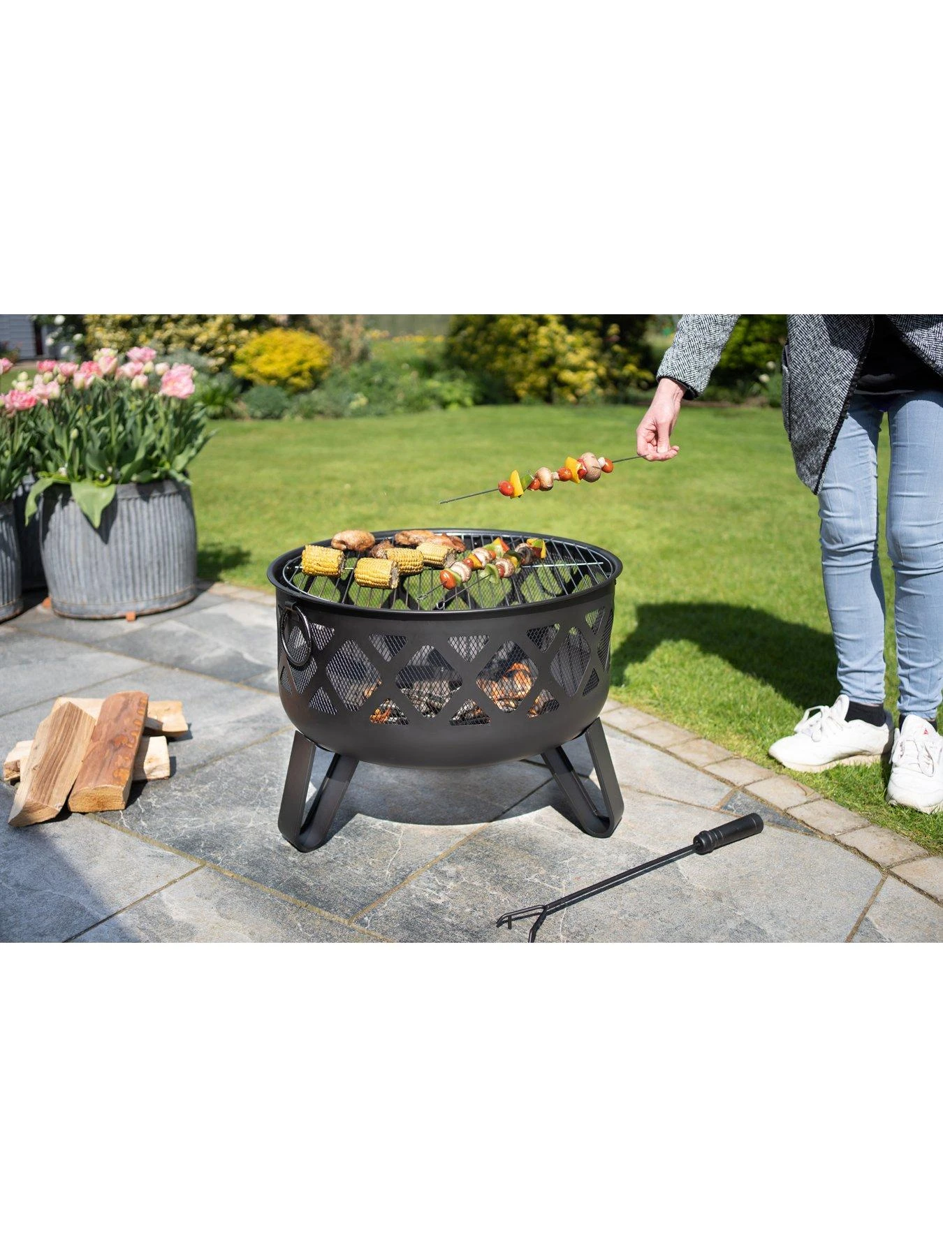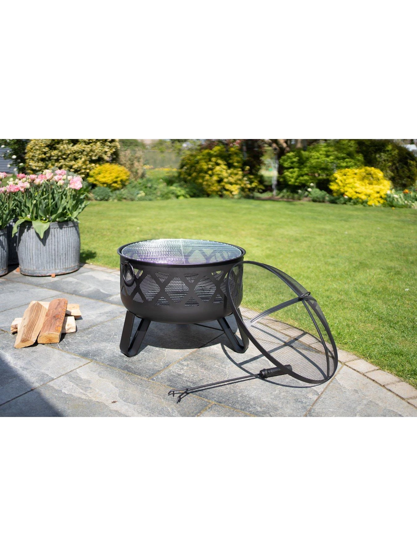 Keep the cold at bay with this eye-catching lattice design deepbowl firepit. It is a striking centrepiece for any outdoor space, crafted from hard-wearing powder-coated steel with a black high-temperature paint finish.