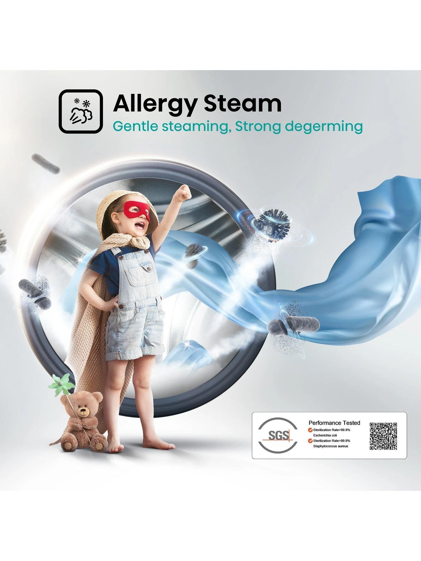 Designed to tackle even the most demanding laundry and offering 15 programmes, including Pure Steam technology, that kills 99.9% of bacteria, it ensures your clothes are spotless, allergen-free, and wrinkle-free.