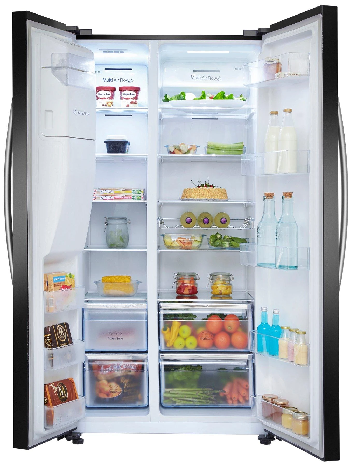 Spacious, stylish and energy efficient, the Hisense RS694 Fridge Freezer’s 535-litre XL interior can hold 29 bags of shopping – plenty of room for your weekly shop and lots of room for all the family’s favourites. A built-in water and ice dispenser on the front offer you freshly chilled water, cubed or crushed ice in an instant to keep your drinks cool. Perfect for family mealtimes – or hosting a party!