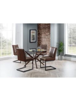 Styled with an industrial retro look, these two chairs have a cantilever design and are upholstered in a vintage brown faux leather. Padded for comfort during the full three courses, and the metal legs are finished in a gunmetal colour.