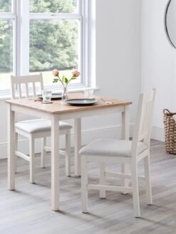 Crafted from solid wood this pair of chairs from Julian Bowen’s Coxmoor collection will accent your dining table with elegance. The chairs are finished in a durable Ivory lacquer that brightens your space, while the comfy padded seats have been upholstered in a textural grey linen for an eye-catching contrast.