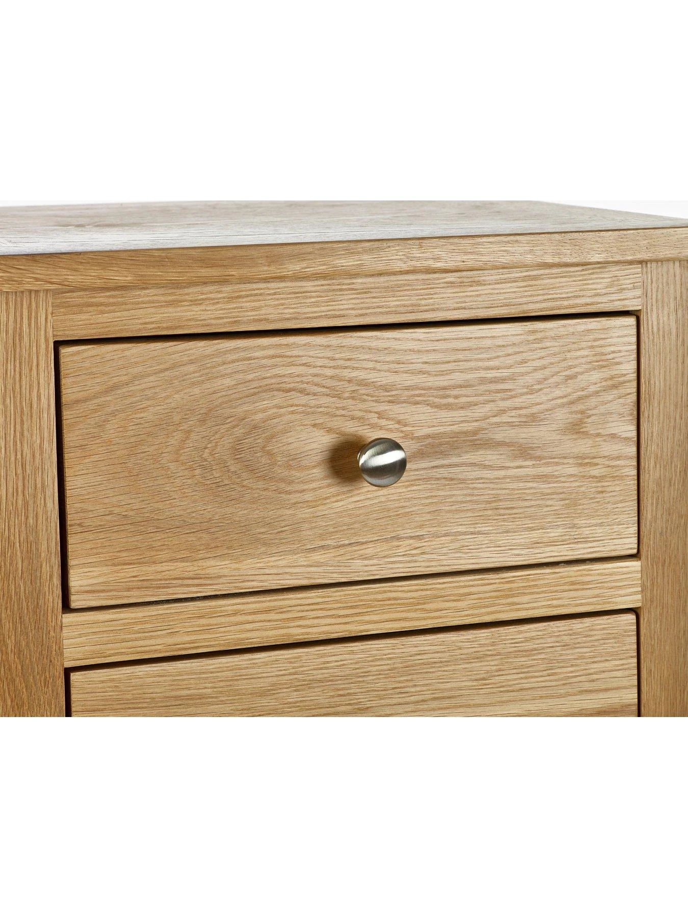 Crafted from solid oak and oak veneers, the Mallory 7 Drawer Narrow Chest provides a simple and stylish storage solution for clothing and other items. Finished with beautiful round silver knobs, the chest perfectly complements any bedroom space.