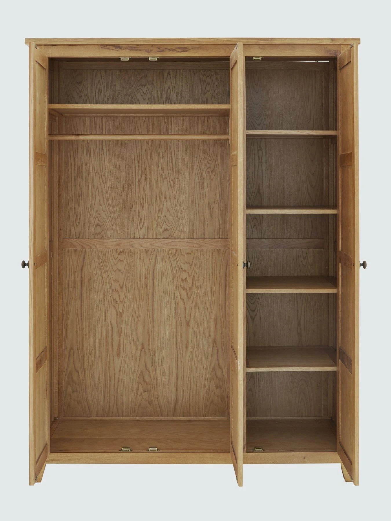 - The Marlborough oak 3-door wardrobe has a 30mm chunky top, clean lines and a sumptuous waxed finish.
