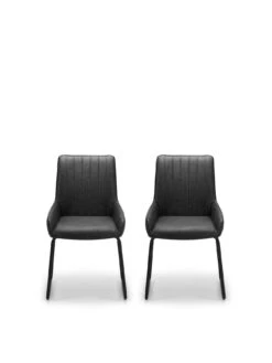 Julian Bowen Pair of Soho Faux Leather and Metal Dining Chairs in Black