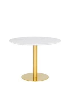 Julian Bowen Palermo 100 cm Round Pedestal Dining Table in White Marble Effect/Gold