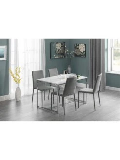 Scala is a sleek dining table with chic marble effect top on a well-crafted stainless steel frame. It has a timeless Italian design that fits well with a wide range of decorative styles. Part of the Julian Bowen Scala Dining and Occasional furniture range.