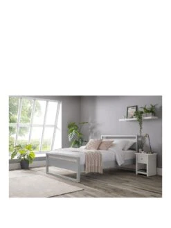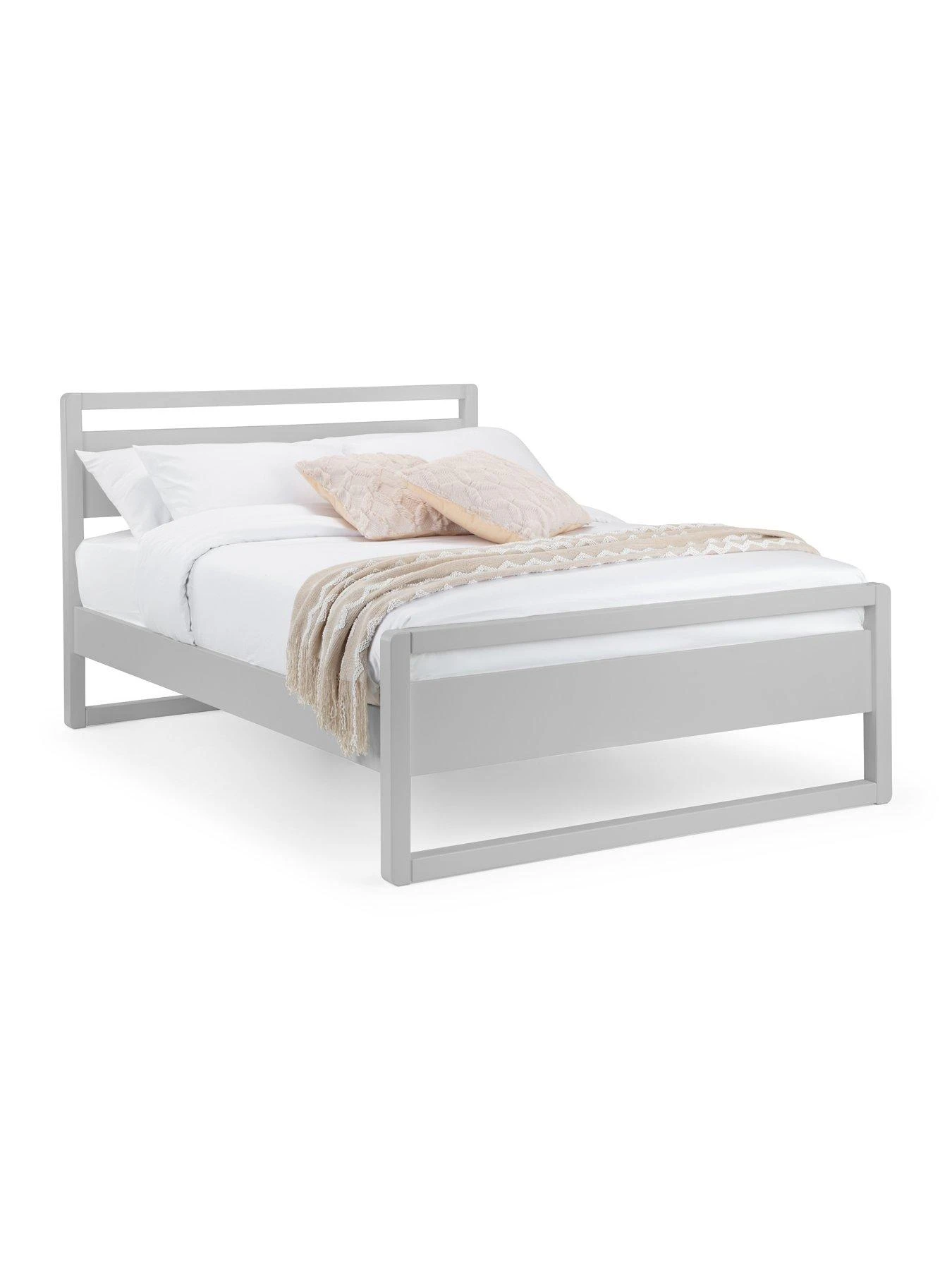 This light and breezy looking Venice bed frame by Julian Bowen is made from a sturdy combination of pine and MDF, all finished in a smooth dove grey shade.