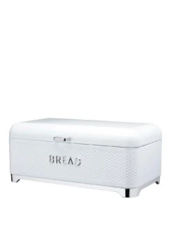 In a classy ice white colour scheme, a series of small, indented hexagons are pressed into the stainless steel surface to create a textured appearance that’s sure to impress. It’s finished with a chrome base and lettering across the front reading bread, while the 42 x 22 x 18 cm size means there’s plenty of room for bread, bagels and rolls.