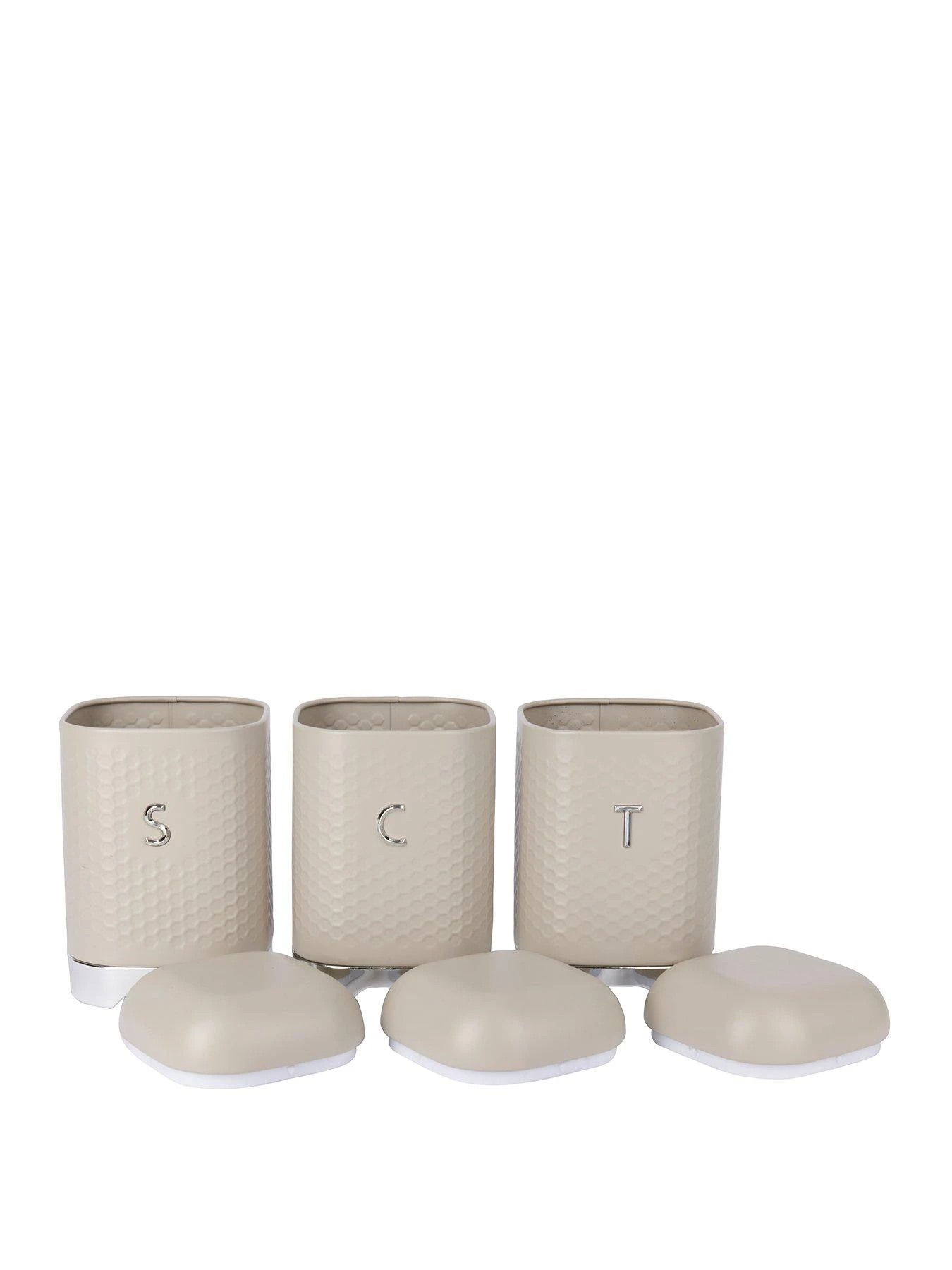 KitchenCraft Lovello Tea, Coffee and Sugar Storage Canisters in Latte