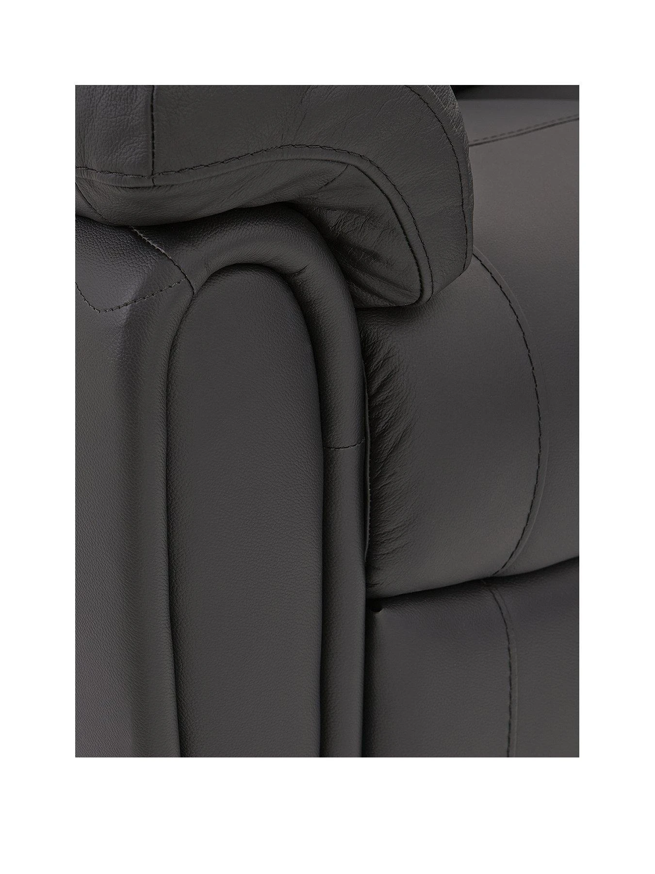 The arm, seat and back cushions are upholstered in a genuine leather that comes in black, while the outer features a colour-matched faux leather fabric.
