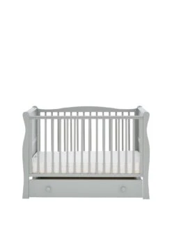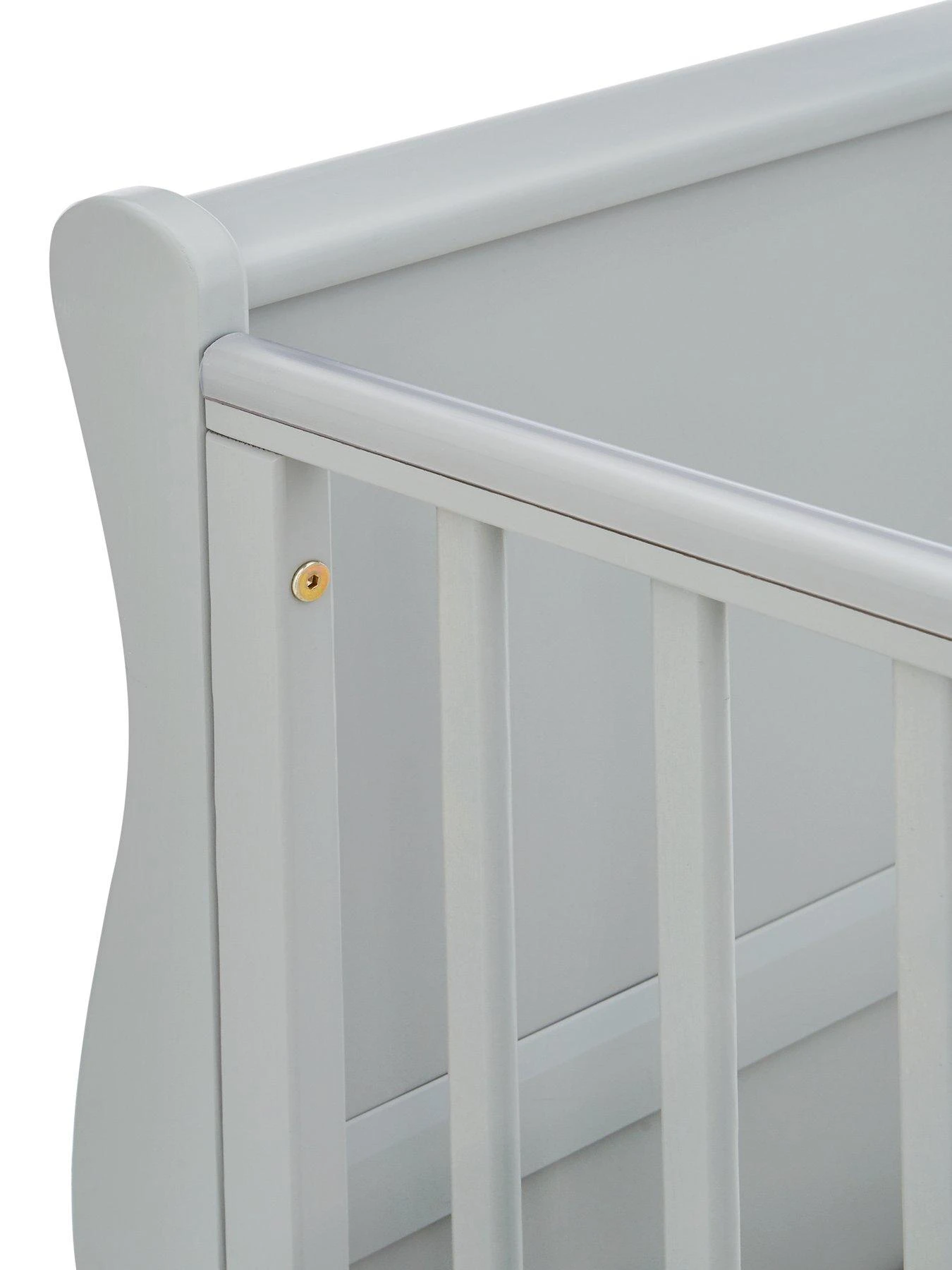 The elegant Little Acorns Sleigh Cot with its integral storage drawer has a classic, clean look featuring beautiful curved edges which is sure to complement any nursery. With its sturdy construction, this beautiful cot has 2 mattress heights to adapt to your child as they grow.