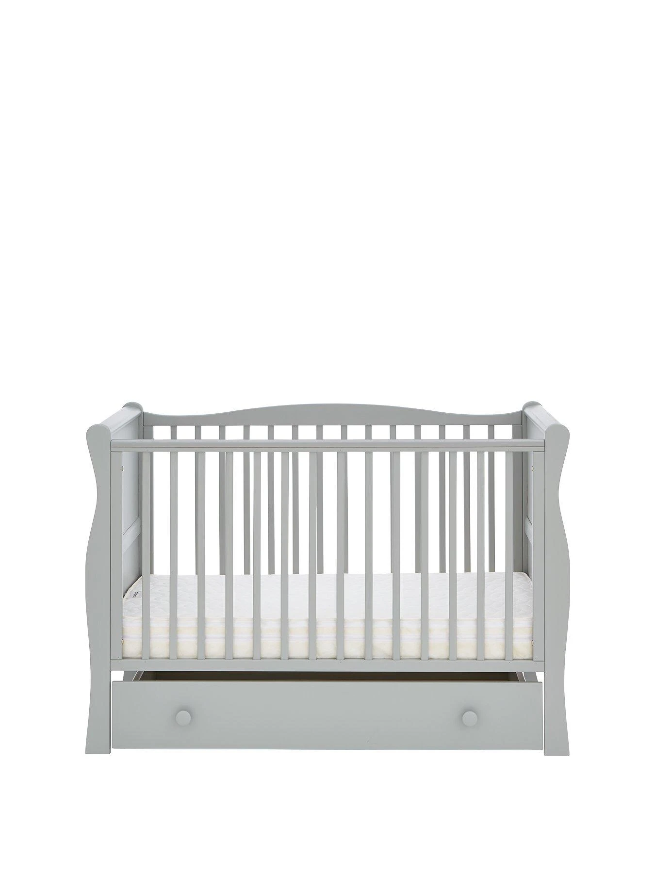 The elegant Little Acorns Space Saver Sleigh Cot comes with a sliding drawer for useful storage.
