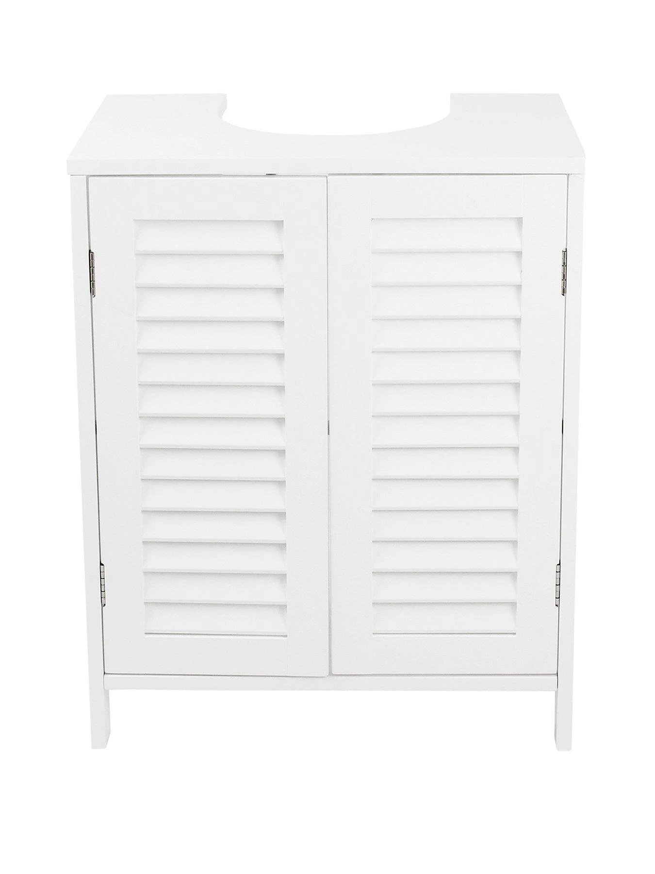 Simple yet eye-catching in a classic white painted finish, the unique look sees two internal shelves hidden behind shutter-style double louvre doors, meaning you can keep shower gel, bubble bath and other toiletries and essentials out of sight.