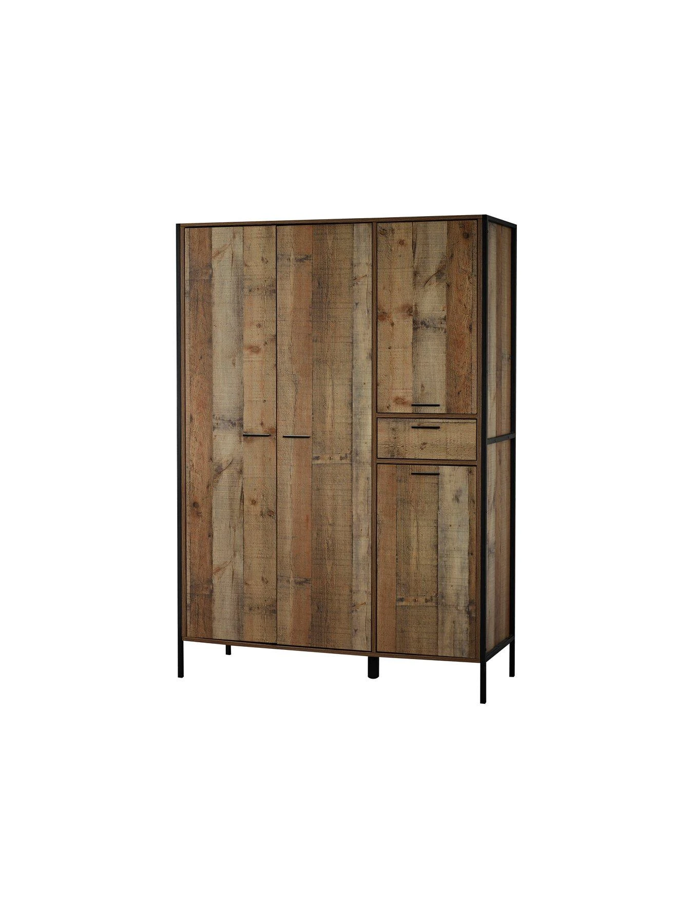 Oozing a modern industrial chic, this wardrobe from LPD Furniture’s Hoxton collection is built around a sturdy black metal frame. A contrasting texture comes from the vintage plank wood-effect, which gives the piece a rustic and distressed appearance.