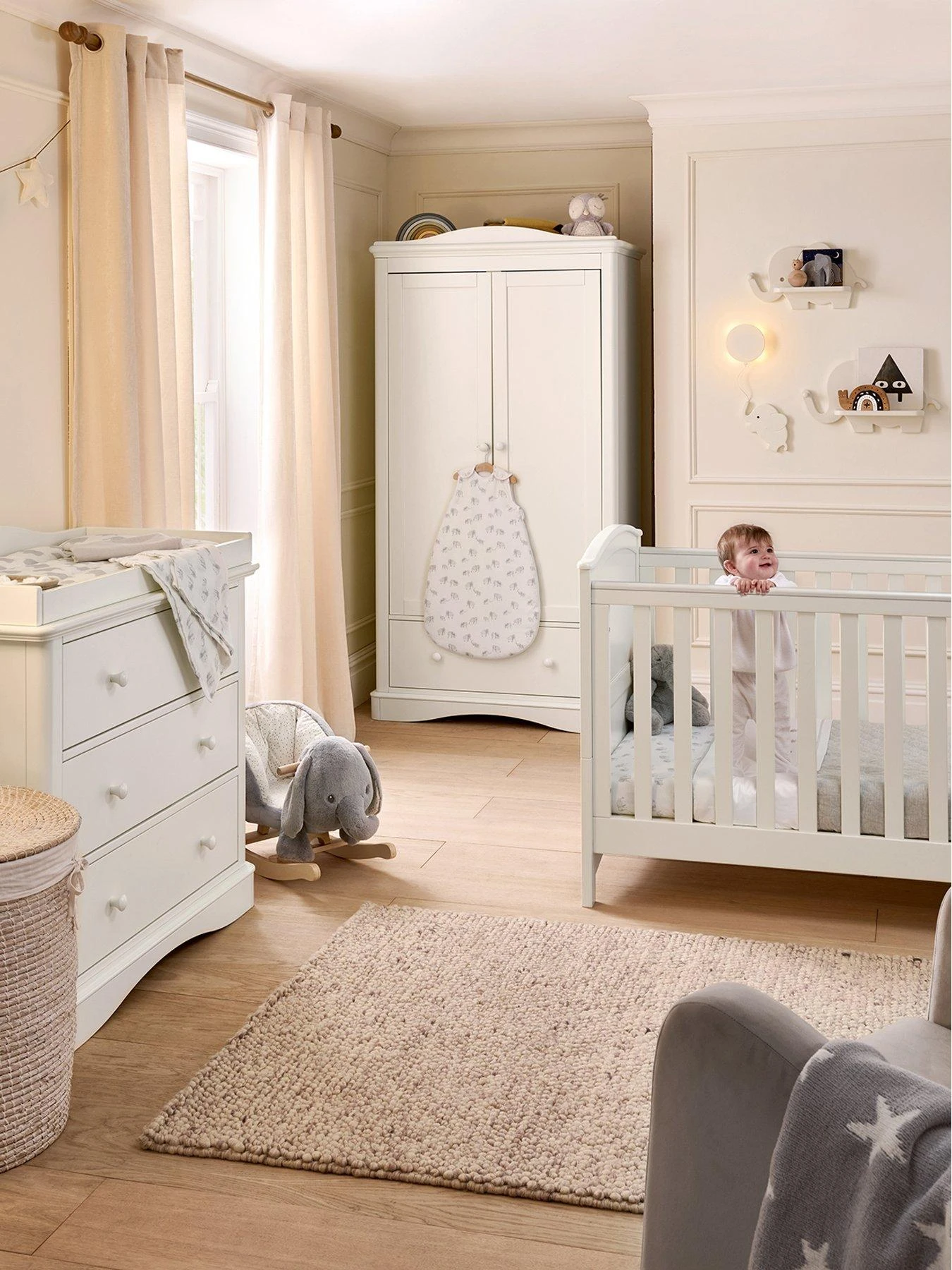 Keep your baby’s favourite clothes organised with the Flyn Wardrobe. Thanks to its full-sized design and removable rails, you’ll have plenty of room to store everything from first outfits to school uniforms. And with a handy drawer as well as an adjustable shelf, you can organise all those sleepsuits, blankets and spare bedding in a way that works for you.