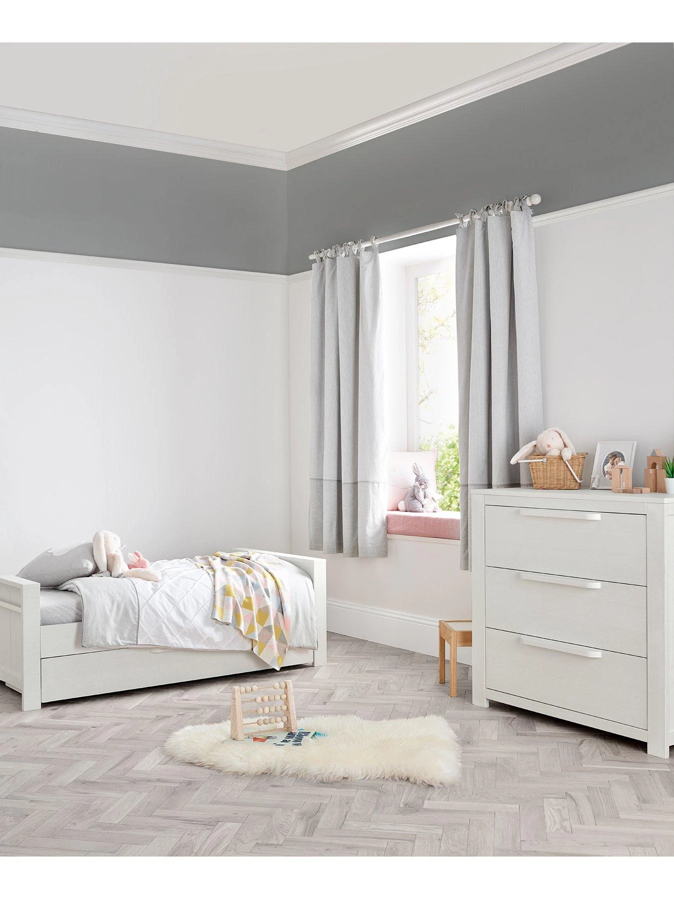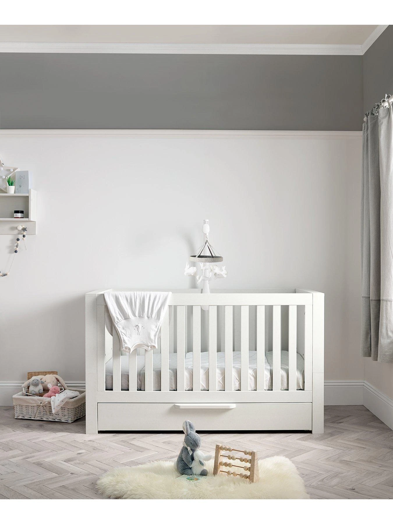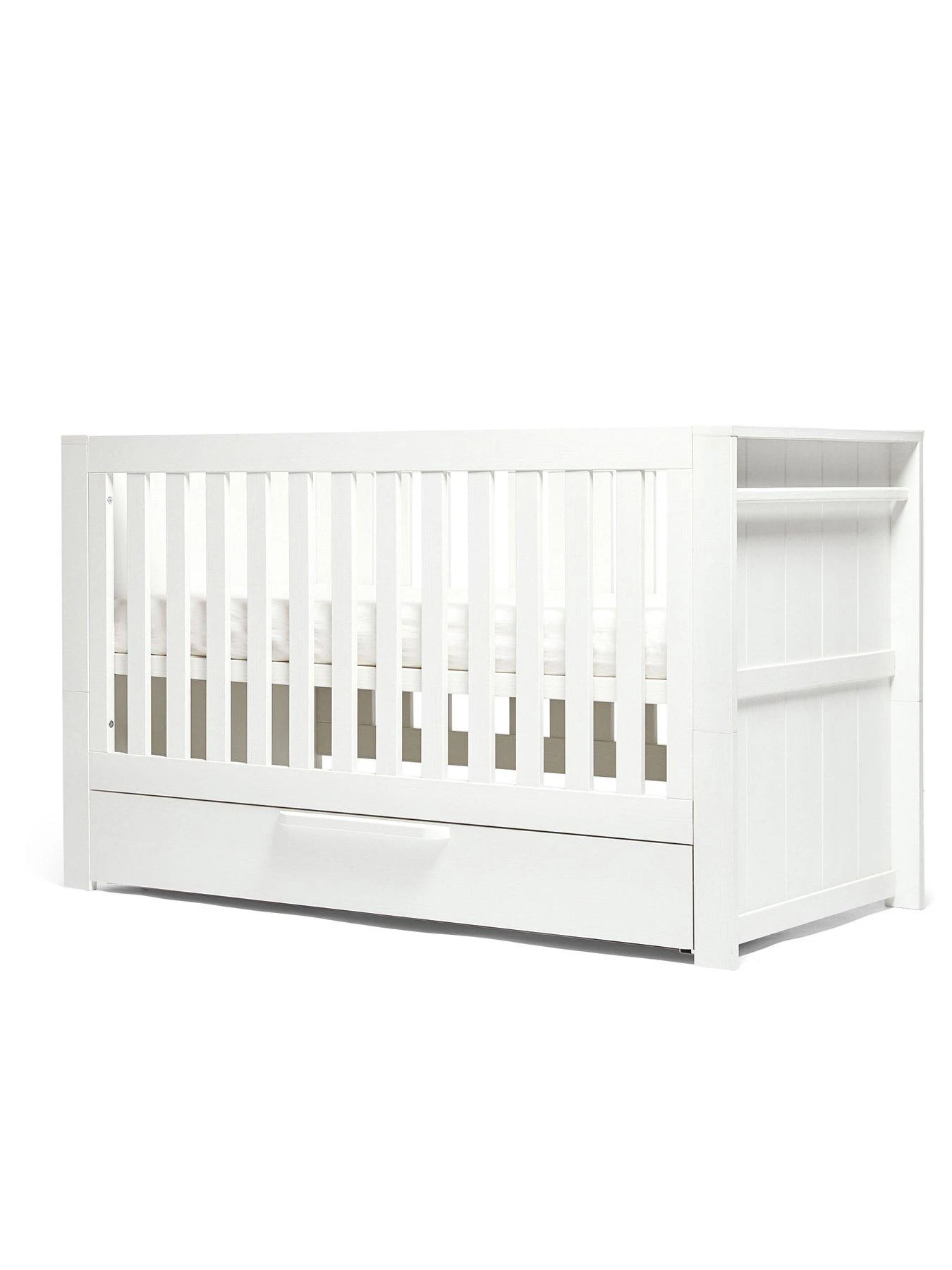 This cotbed converts into both a toddler bed and day bed, for long-lasting use. There are 2 base height positions making it even easier to access baby and safer than a traditional drop-side cot. What’s more this cotbed features a soft close underbed storage for extra space.