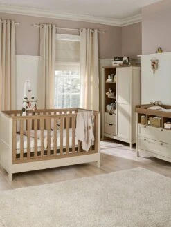 An elegant furniture range with a distinctive bi-colour design, Harwell Cashmere combines natural wood with soft hushed taupe for an understated and neutral look that sits effortlessly in a modern nursery.