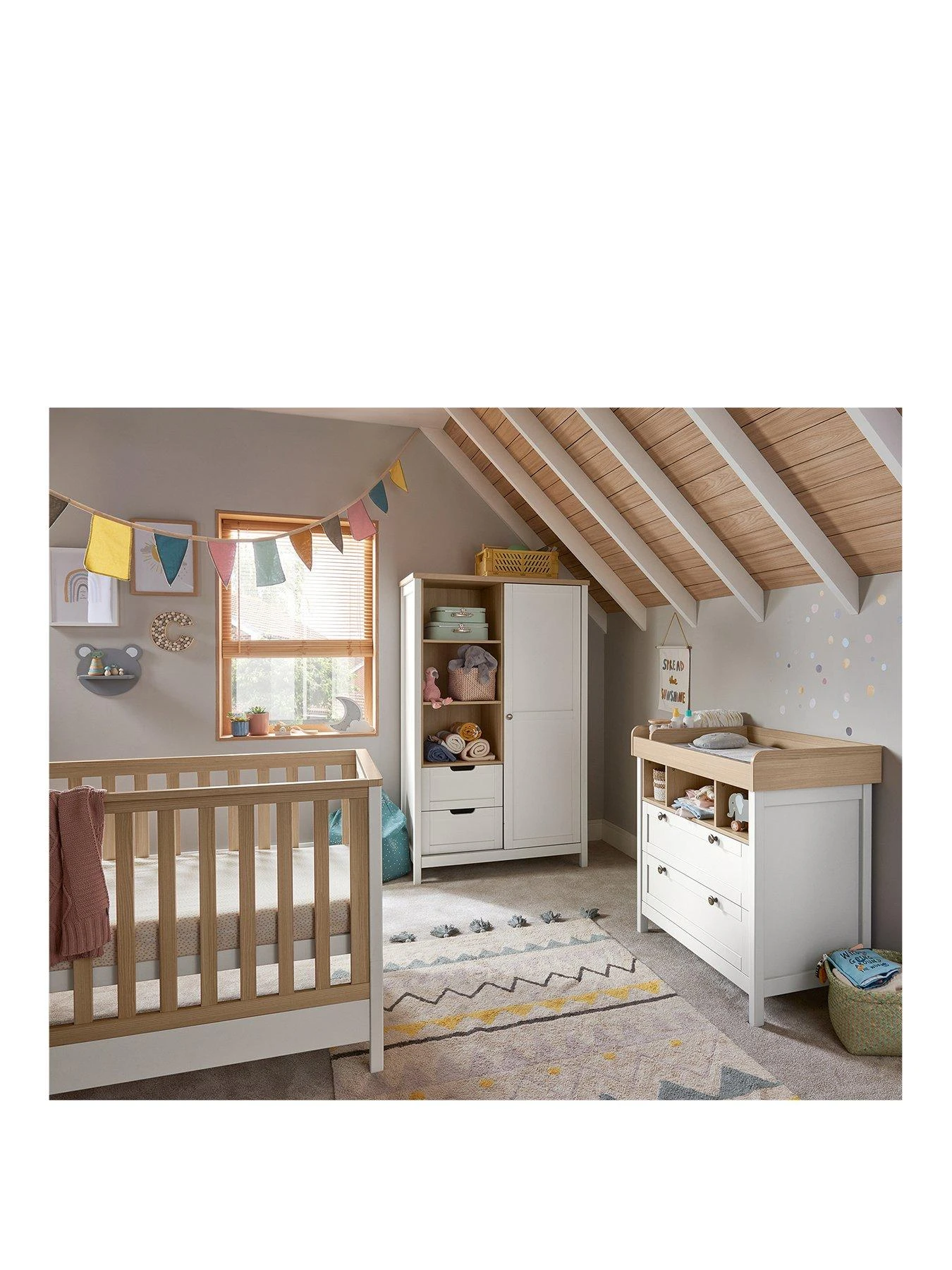 - Includes a Cot Bed, Dresser Changer and Wardrobe