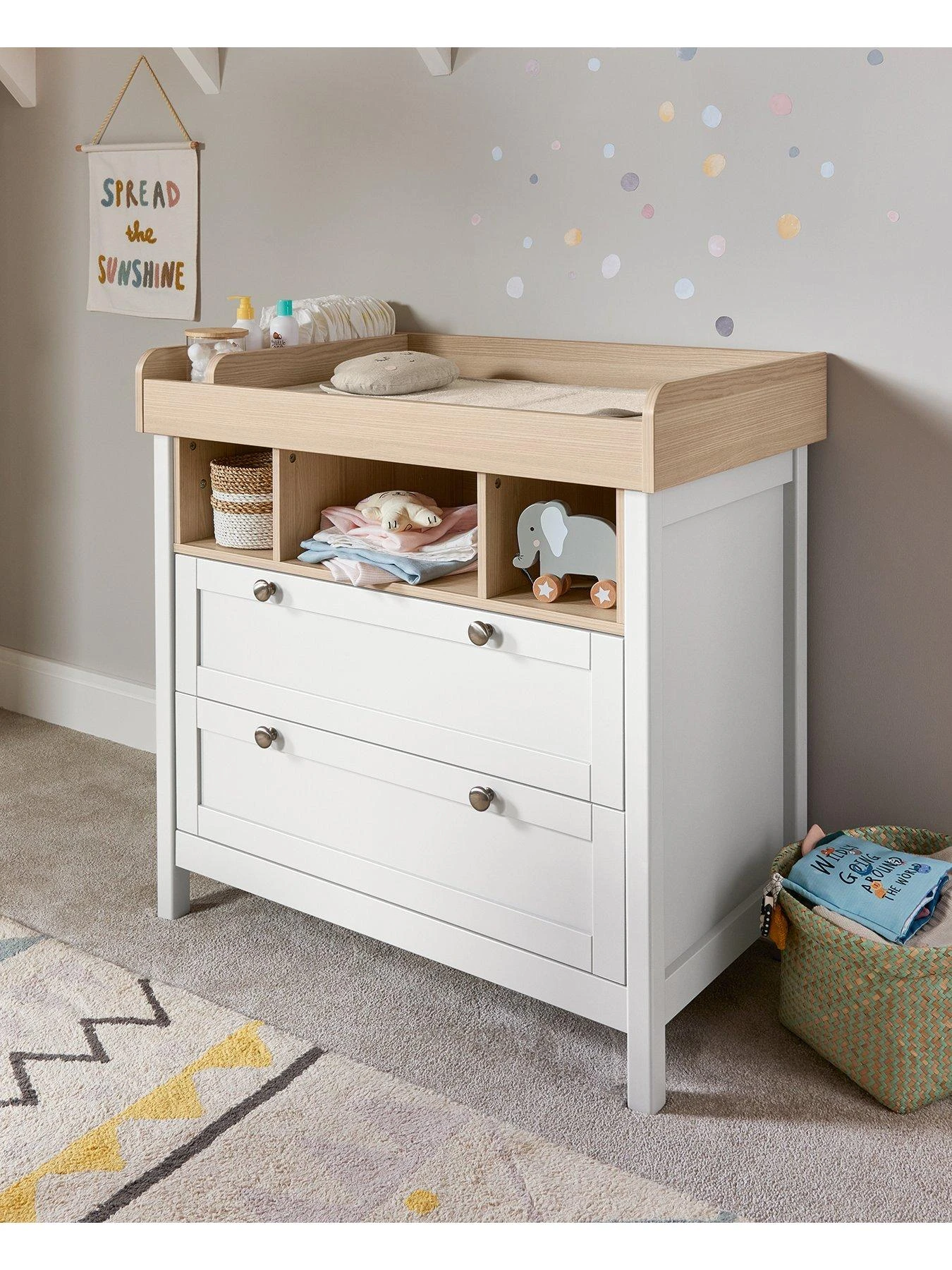 The dresser changer makes changing and dressing your little one easy. It’s got a removable top – so you won’t need to upgrade your furniture when your little one has a growth spurt. And thanks to the drawers and open box-style storage space, there’ll be plenty of room for all your child’s toys and clean outfits – whatever their age. The handy soft close drawers also mean you won’t wake baby during naptime.
