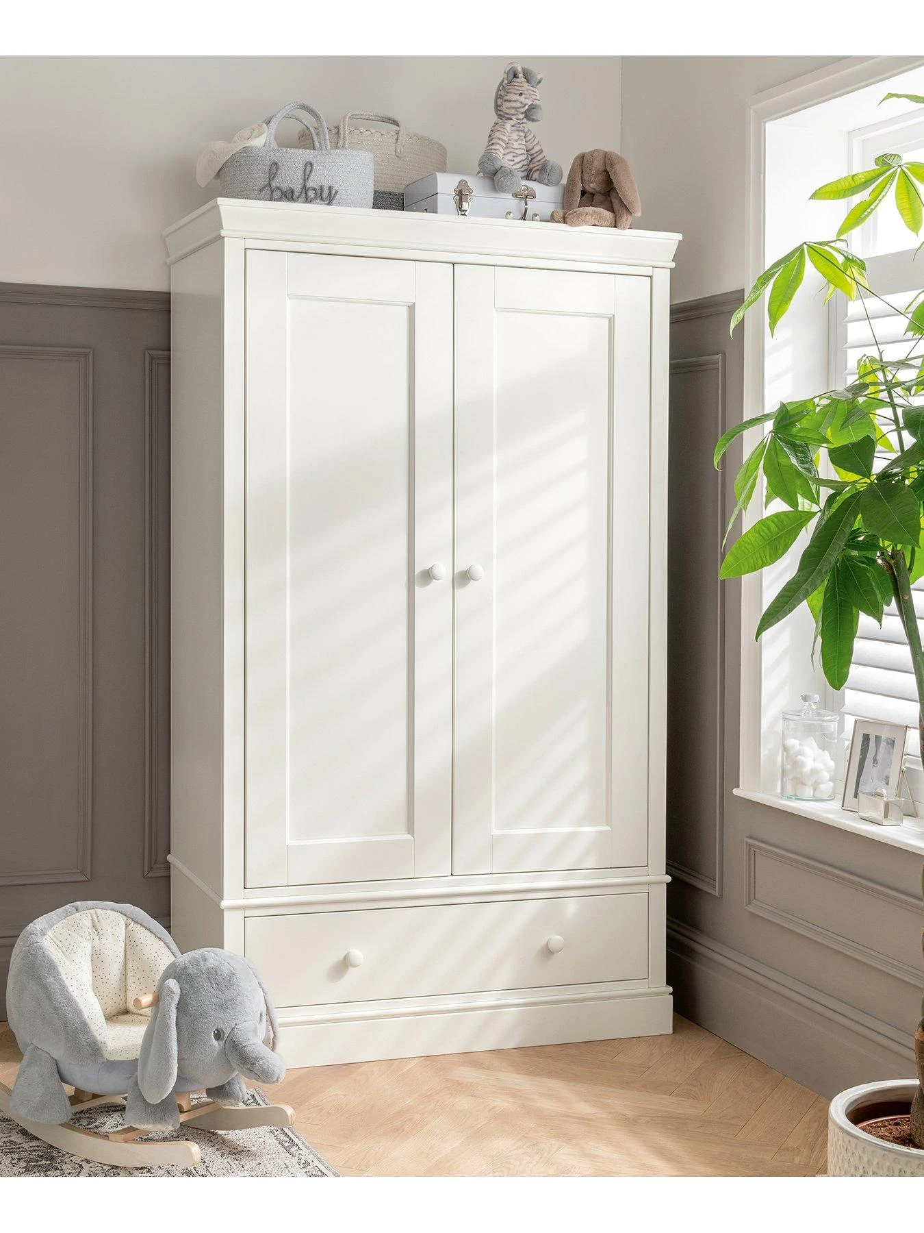 The Oxford Wardrobe in white is the perfect way to store and organise your ever-growing collection of tiny tops, baby blankets and teddy bears. With two hanging rails, a drawer and an adjustable shelf, this nursery wardrobe gives you plenty of space to customise and organise all baby’s things. The soft-close doors and drawer ensure a peaceful nursery and plenty of undisturbed sleep for baby, and for you.