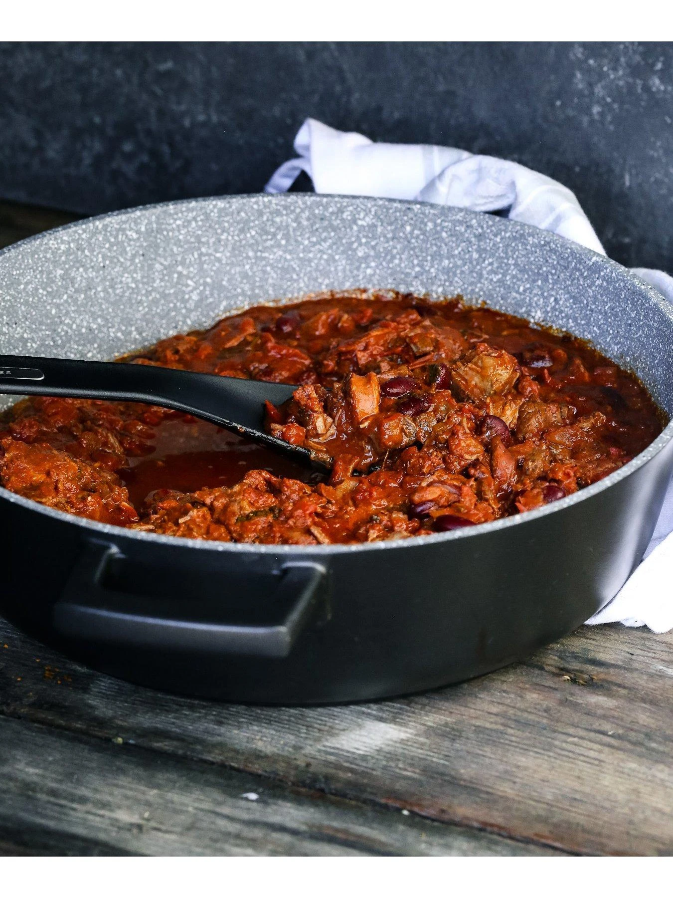 With a 28 cm diameter and a 4-litre capacity, the cast aluminium construction means that not only is it incredibly strong and sturdy, but it also distributes heat quickly and evenly throughout. A stainless steel base allows you to use the pan on any hob, including induction, and it’s also oven safe to 200°C/392°F/Gas Mark 6. This means it’s ideal for whipping up a family-filling casserole or even making a spicy baked pasta dish, and the self-basting lid helps to keep moisture in the pan while cooking.