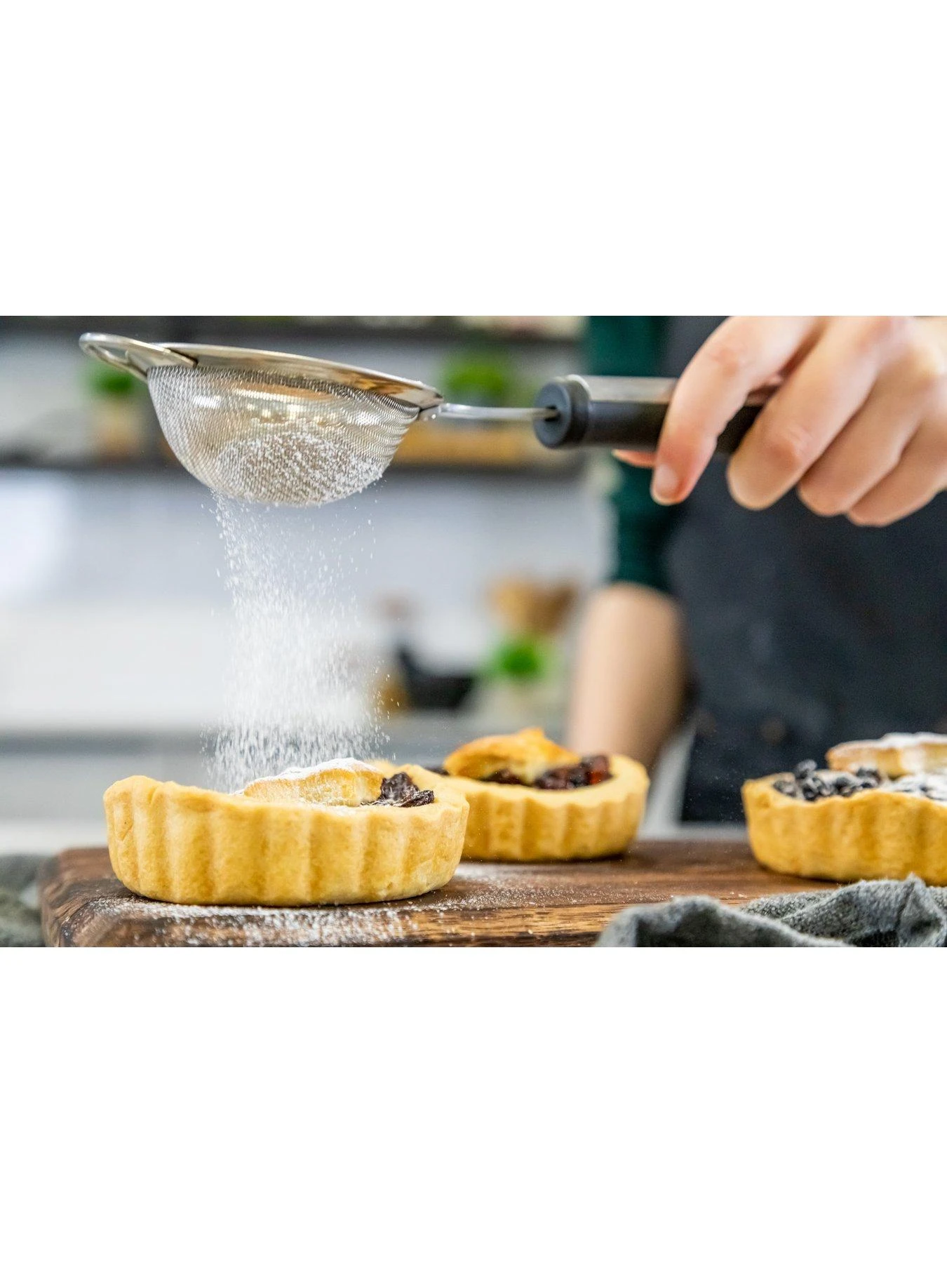 Not only is it lightweight, allowing you to use it for longer periods, but it’s also ergonomically designed, so it’ll sit more naturally in the hand. An easy-grip reinforcement also ensures you don’t need to squeeze tightly when using it to filter fine particles or dust a cake with icing sugar.