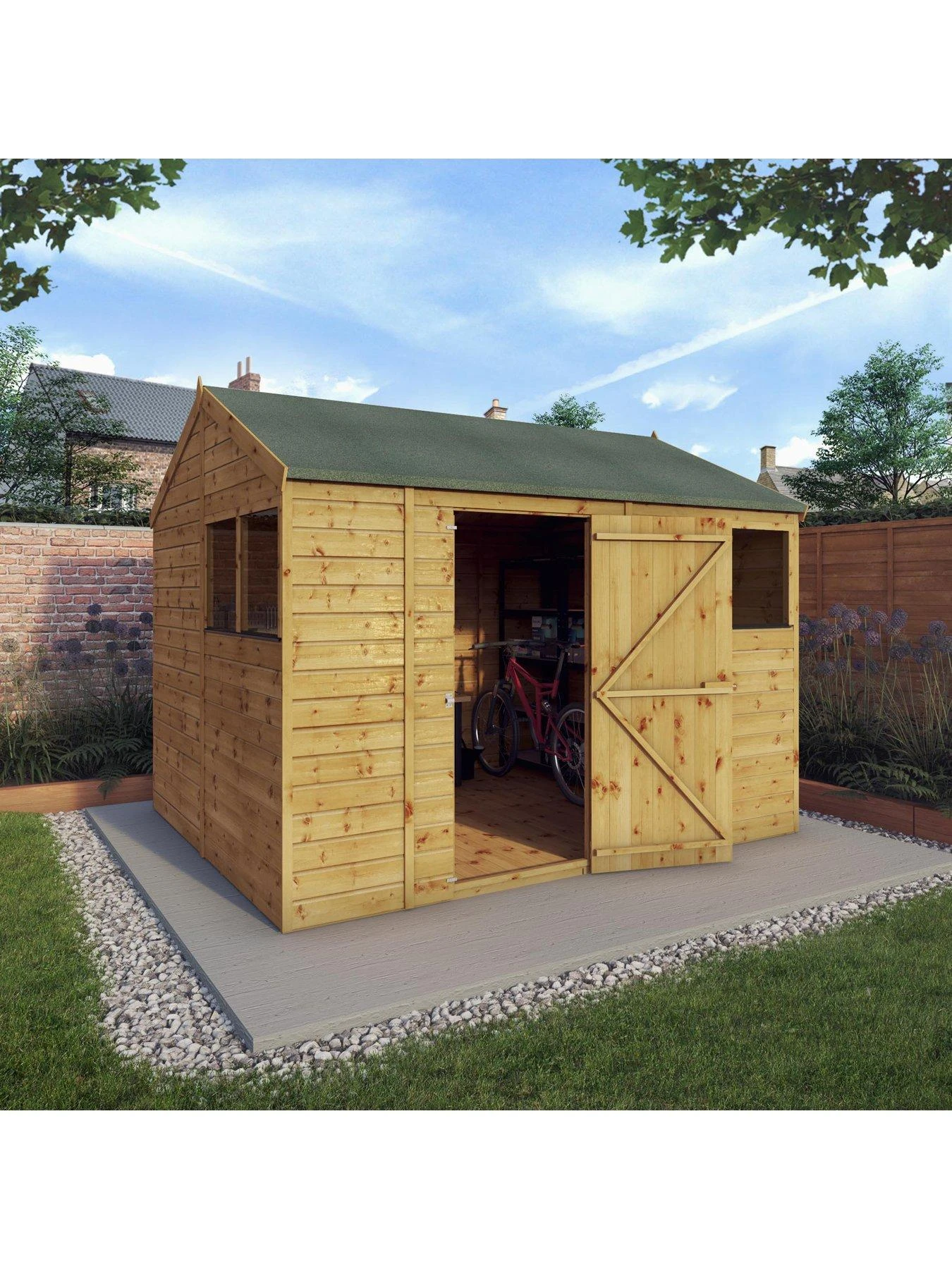 “The 10ft x 8ft Shiplap Reverse Apex Shed is manufactured here in the UK, using ethically sourced, FSC® certified timber. Featuring a fixed Styrene glazed window this shed boasts a light interior. Ideal if you are planning to use this building as a functioning workshop or hobby room. Alternatively, the vast internal space of this shed offers ample room for storage. This product benefits from a versatile and adaptable modular design. With ease and efficiency, you can reconfigure the buildingâs wall panels to create a space that truly embodies your unique vision. Need to move the door? No problem! Prefer the windows on the side? Consider it done! The power is in your hands to customise and configure the wall panels exactly as you envision.